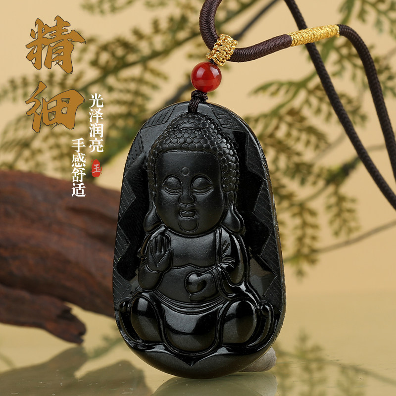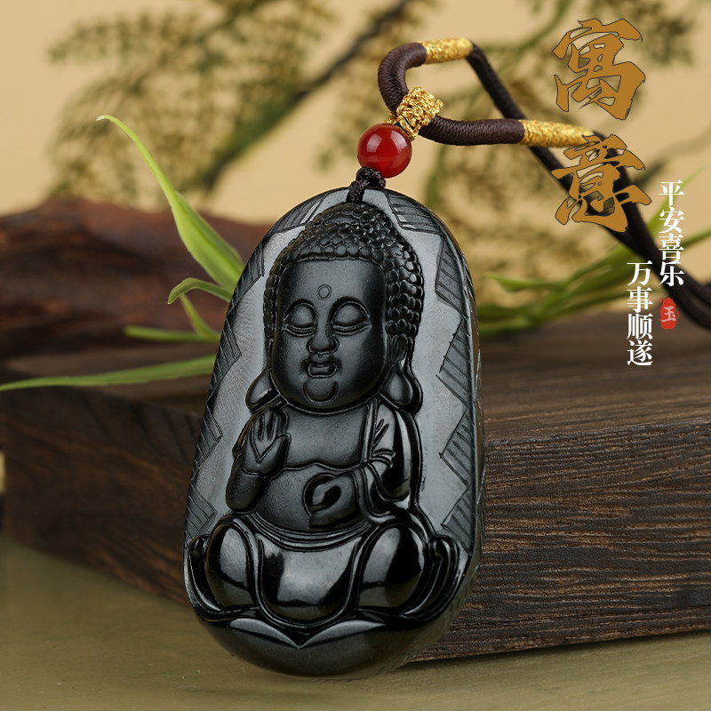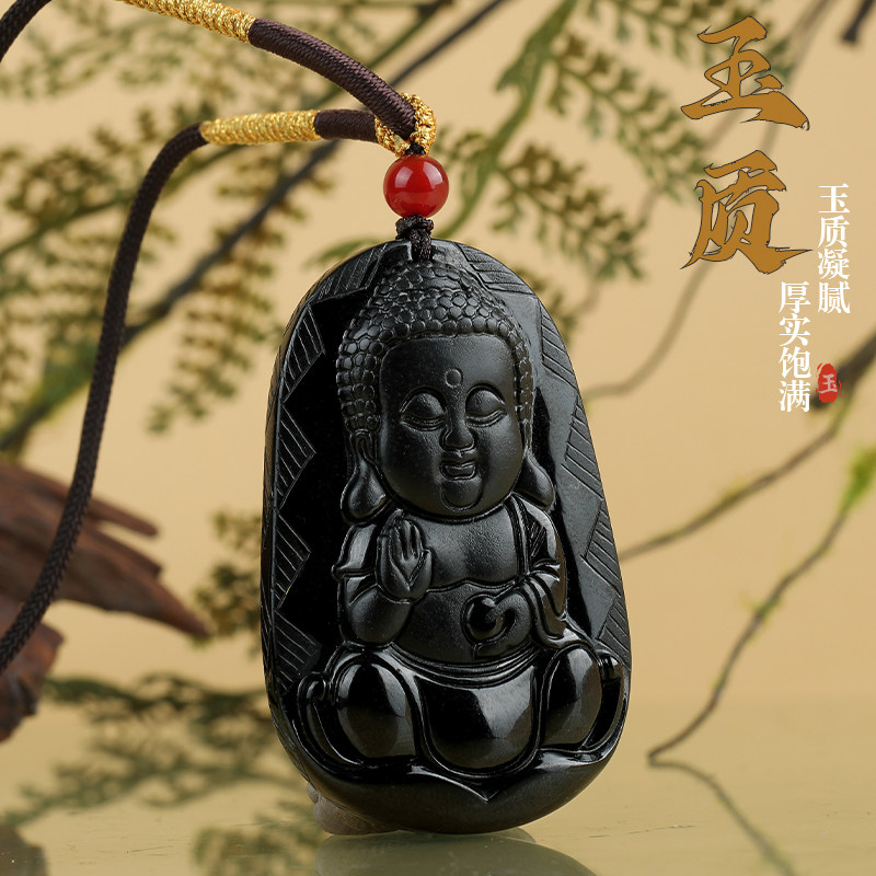 唐今玉天然a货翡翠墨玉佛公宝宝佛吊坠冰种玉石墨翠小佛女挂件玉