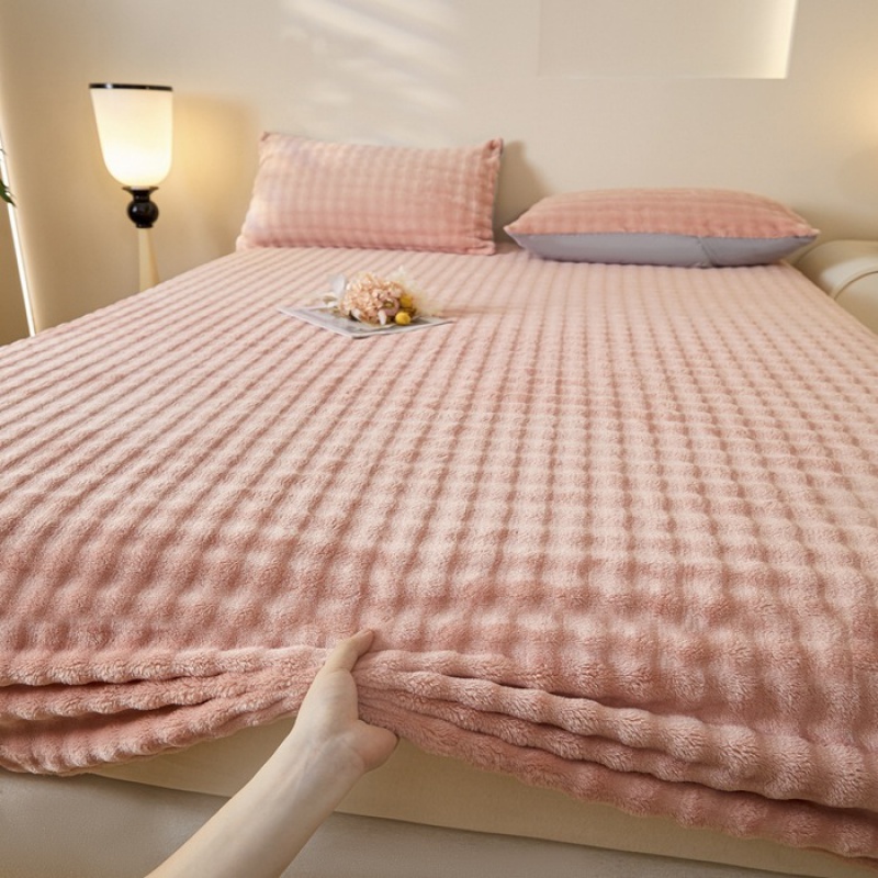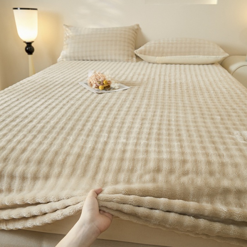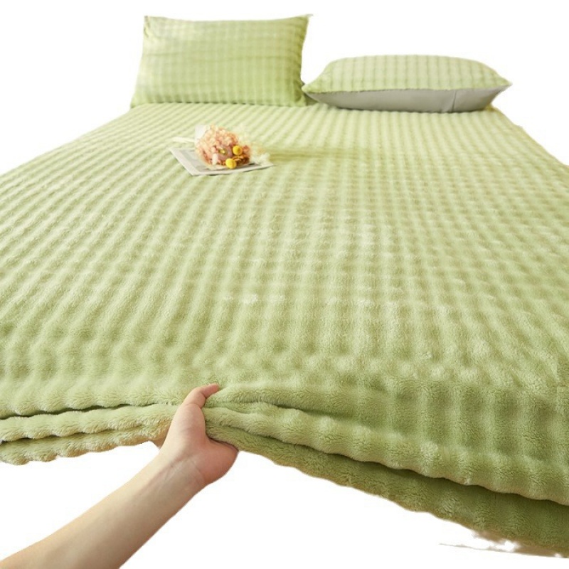 床单冬季加绒加厚三件套兔毛绒牛奶绒高克重防滑床笠学生宿舍