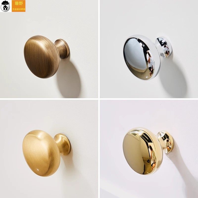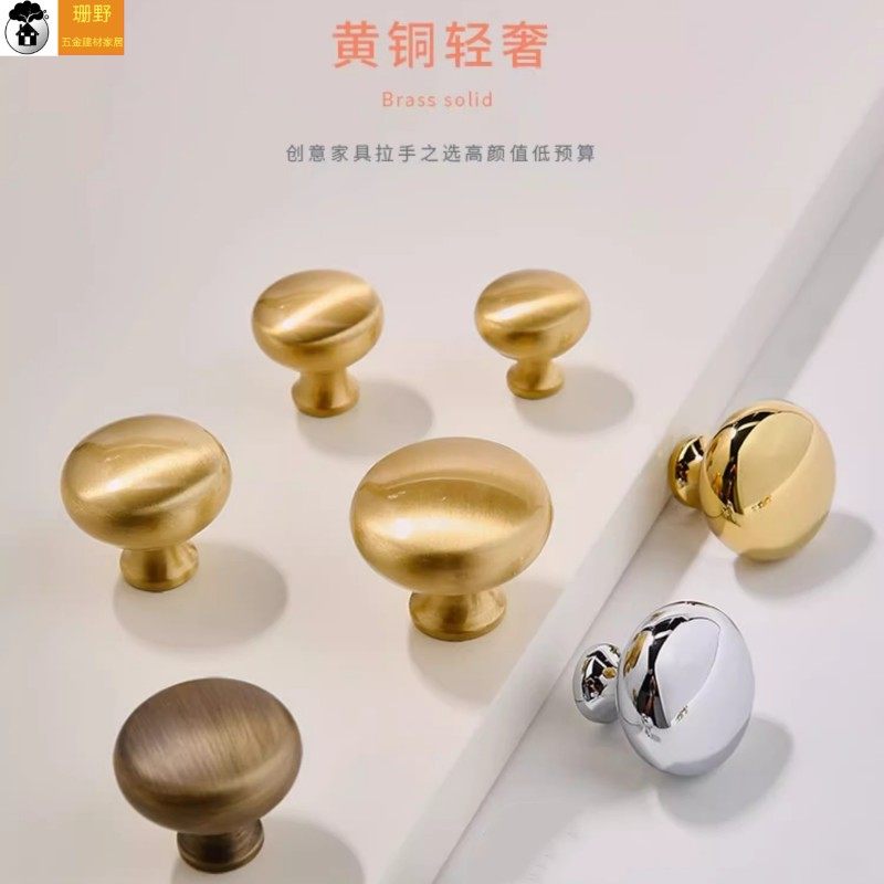 简约金色蘑菇头黄铜拉手衣柜门鞋柜橱柜抽屉简欧圆小把手2024
