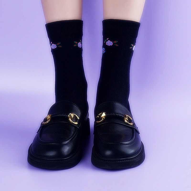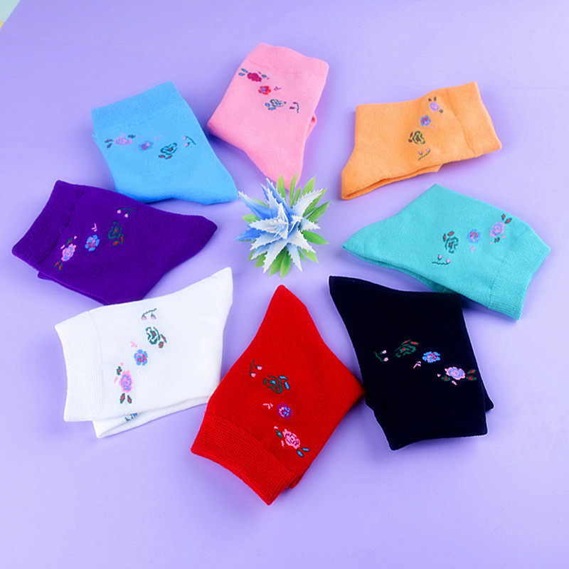 红色龙年无骨袜子女中筒袜春秋款纯棉底长筒堆堆袜秋冬保暖妈妈袜