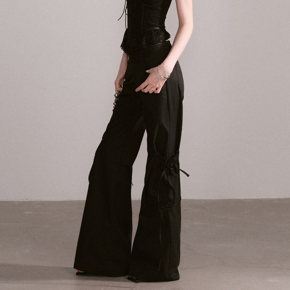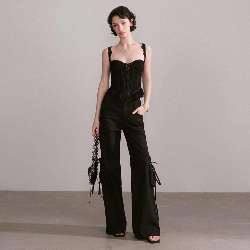 首页> 女装> Mess Studio 辣妹甜酷休闲蕾丝腰头拖地直筒宽松长裤白色工装裤女