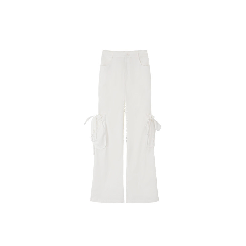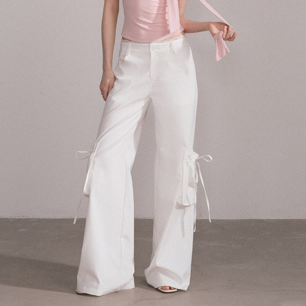 Mess Studio 辣妹甜酷休闲蕾丝腰头拖地直筒宽松长裤白色工装裤女