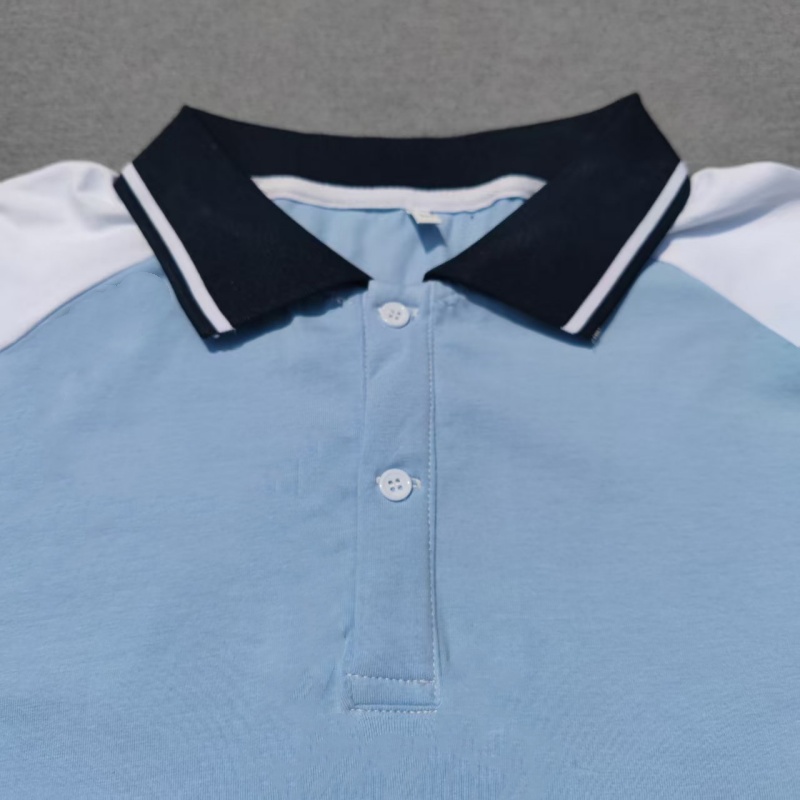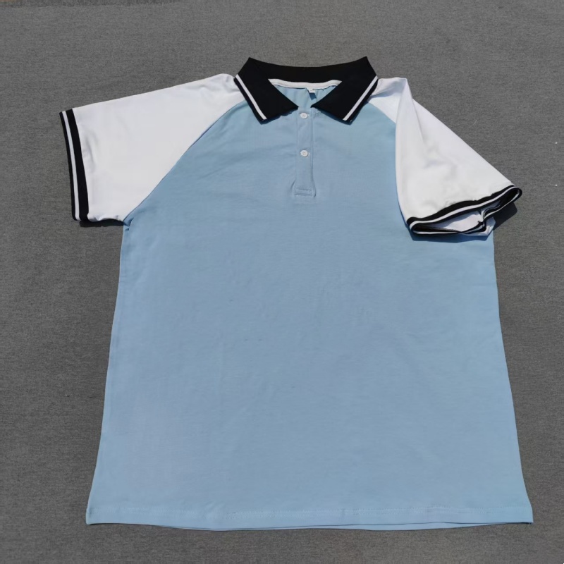 定做夏季男女校服同款运动短袖浅蓝拼白袖翻领休闲T恤POLO衫短袖