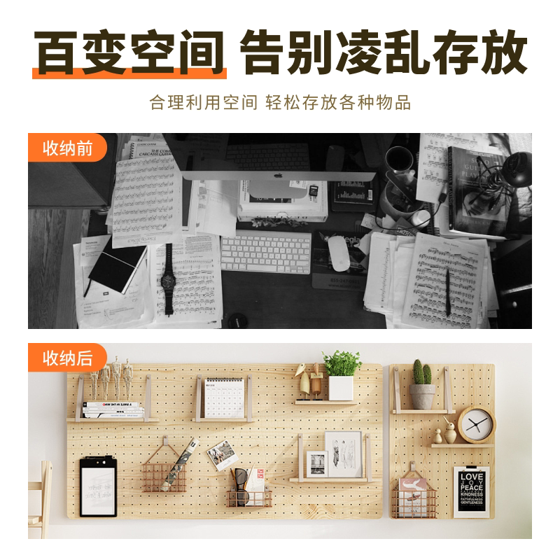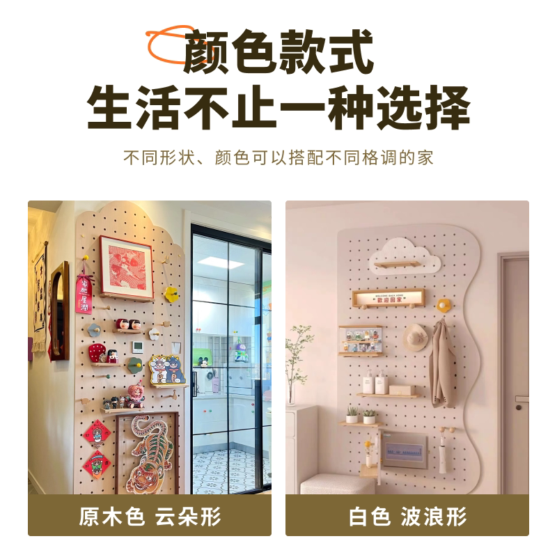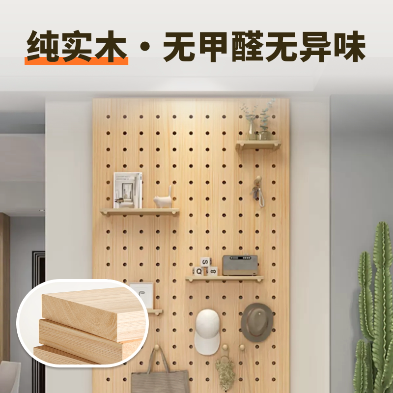 定制实木洞洞板门口入户玄关墙上置物架挂板隔板展示收纳架造型墙