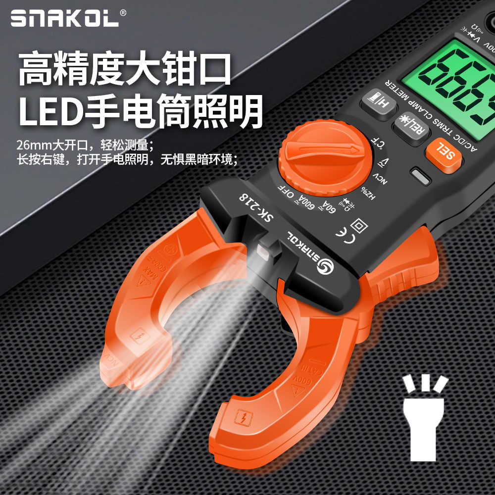 斯耐科交直流电流600A钳形表SK-218多功能钳表电工智能防烧交直流