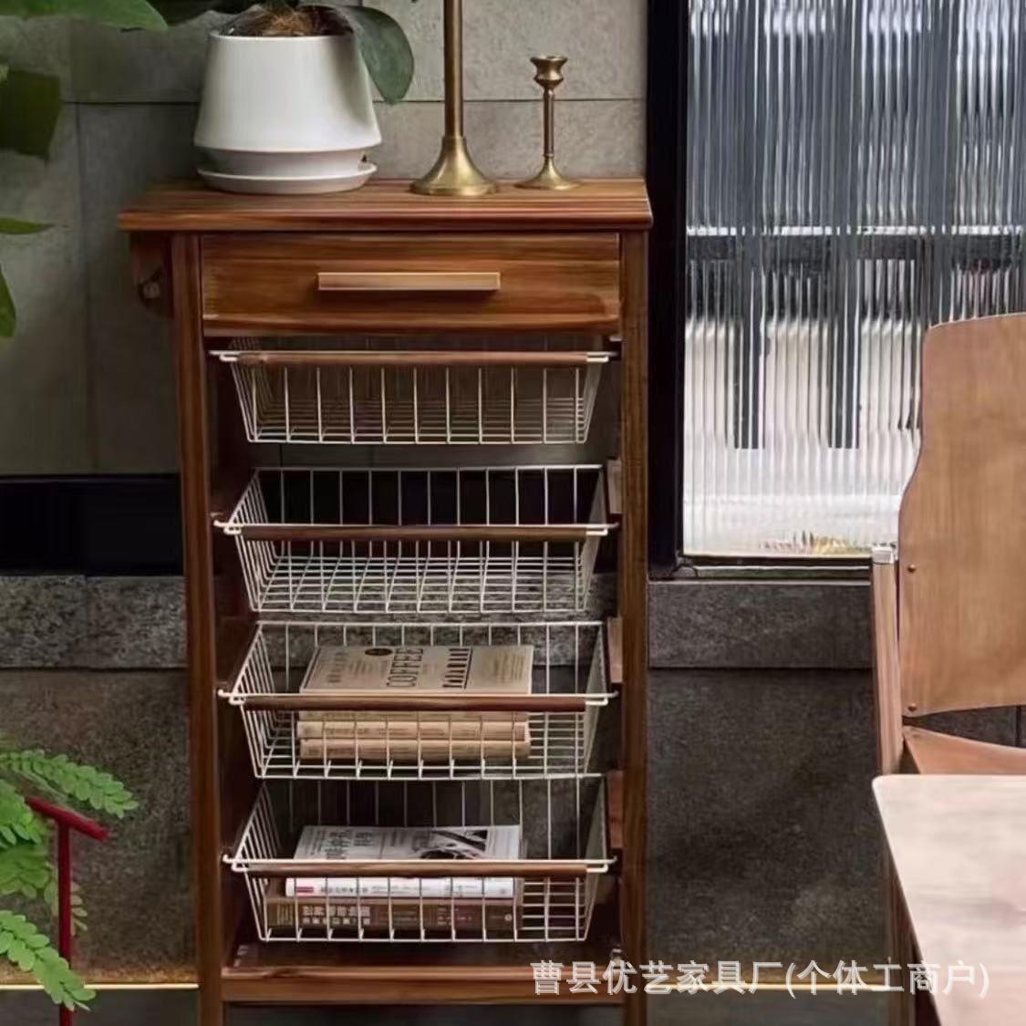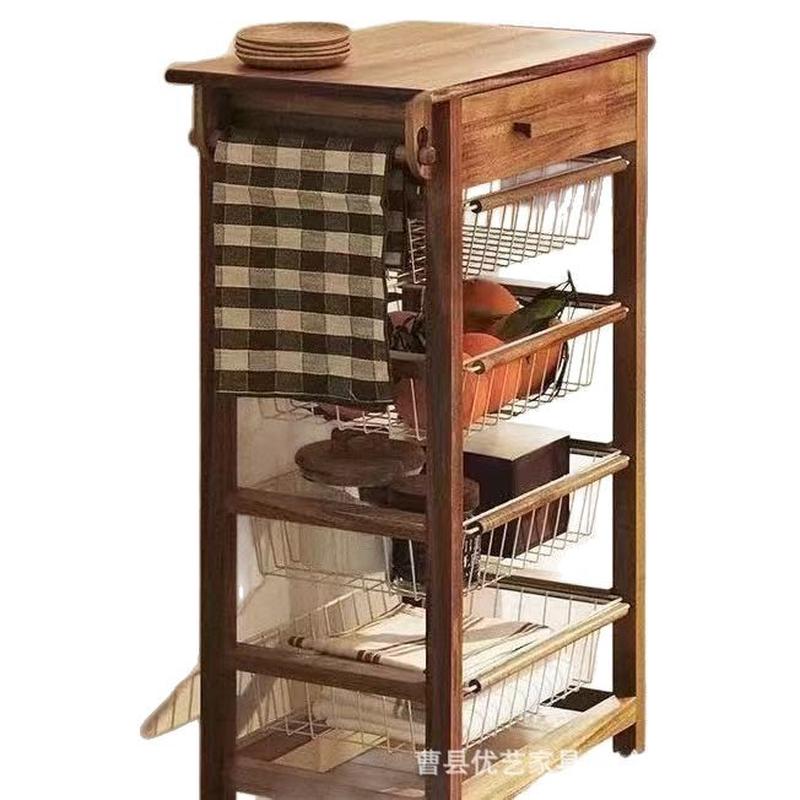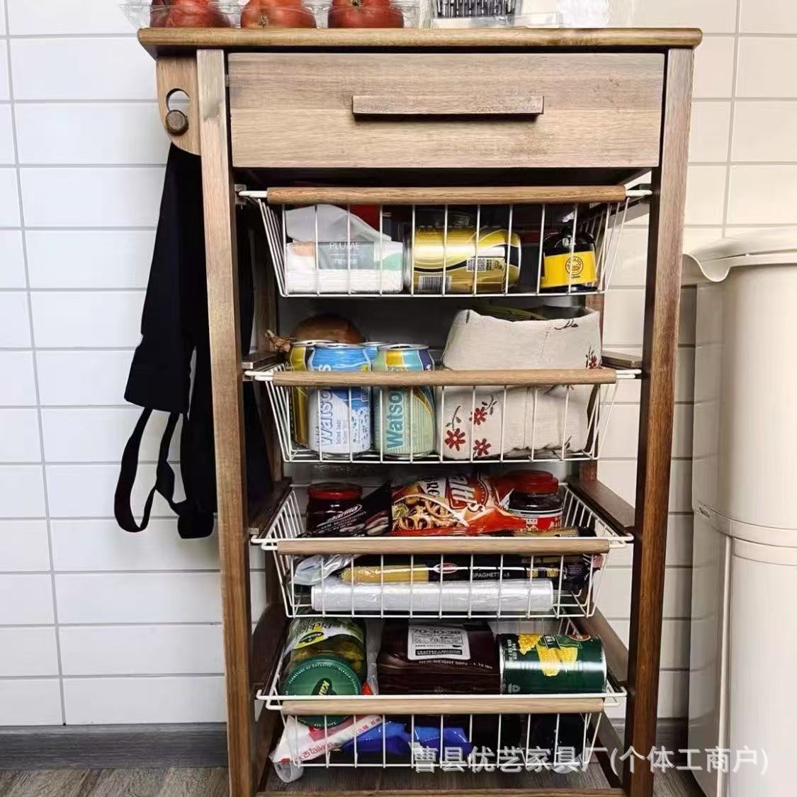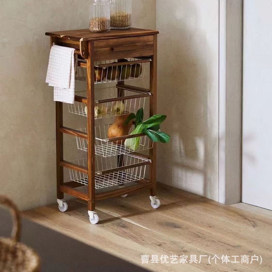餐厅置物架四层家用可移动整理筐靠墙收纳架零食水果落地整理架