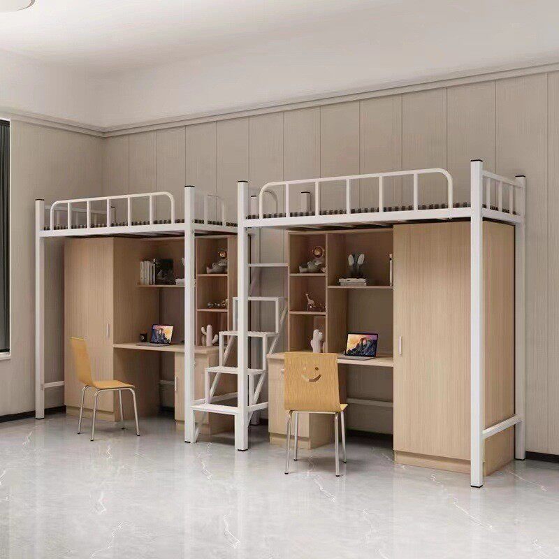 上床下桌学生员工宿舍高架床铁艺床学校寝室组合床公寓床书柜一体