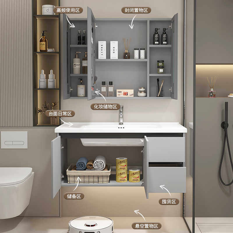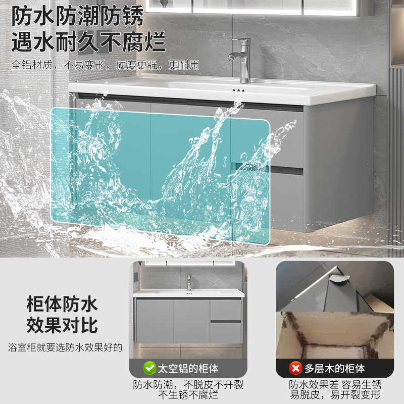 加厚全铝浴室柜组合太空铝蜂窝洗脸盆柜洗手盆陶瓷一体盆抽屉