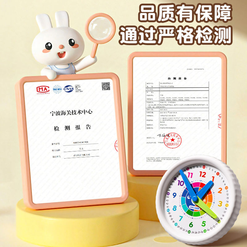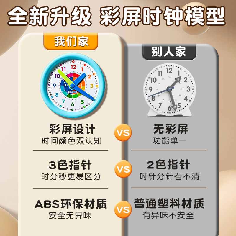 得力钟表模型小学教具时钟学习专用一二年级三针联动认识时间学具