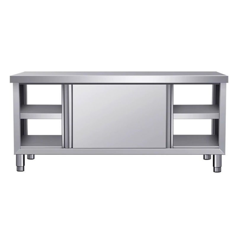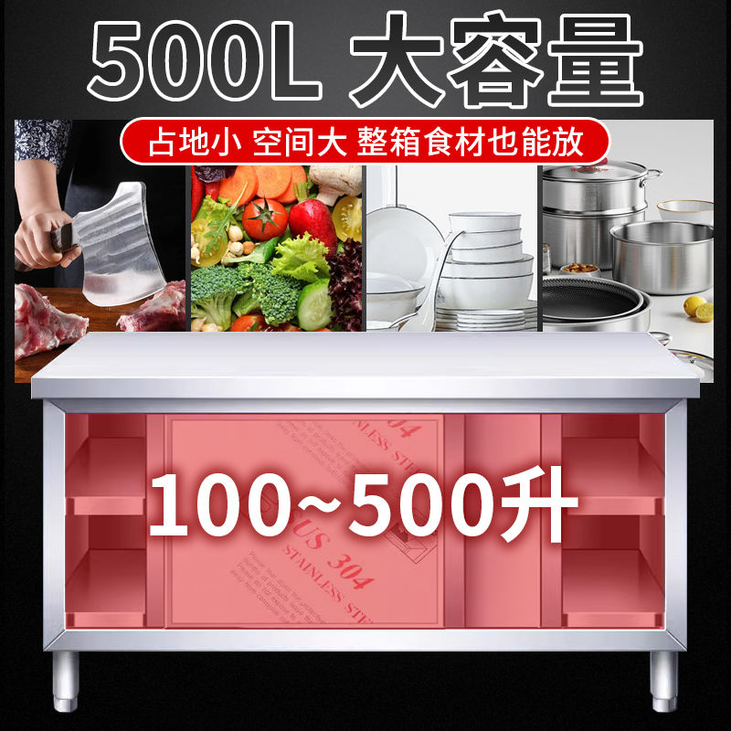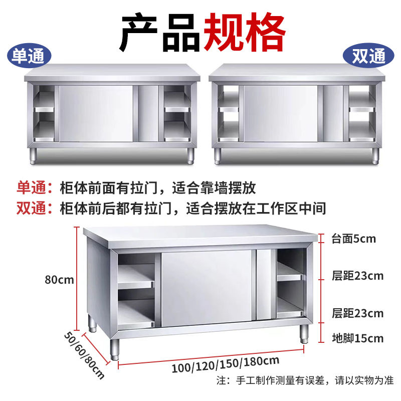 304不锈钢拉门工作台厨房打荷台切菜碗碟柜家用加厚焊接操作台
