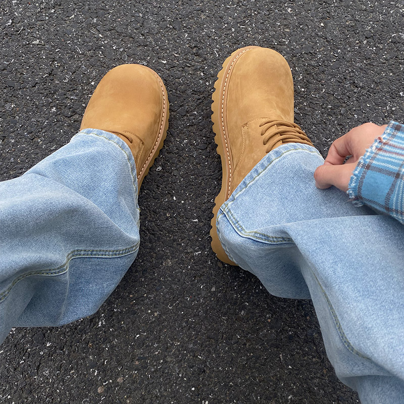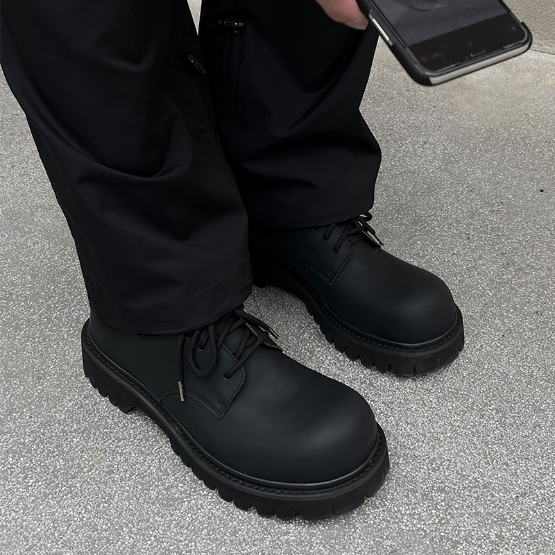 KREATE「如运动鞋轻便」头层牛皮圆头哑光厚底张杰同款德比皮鞋