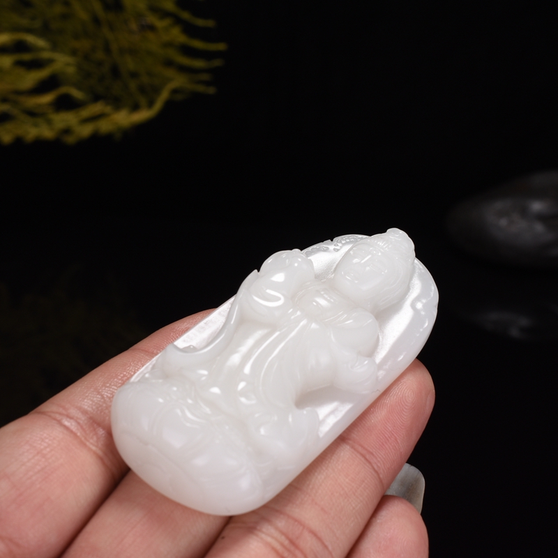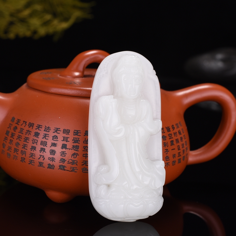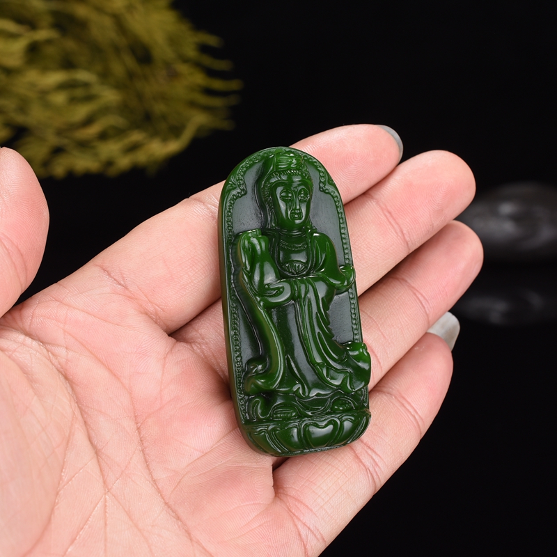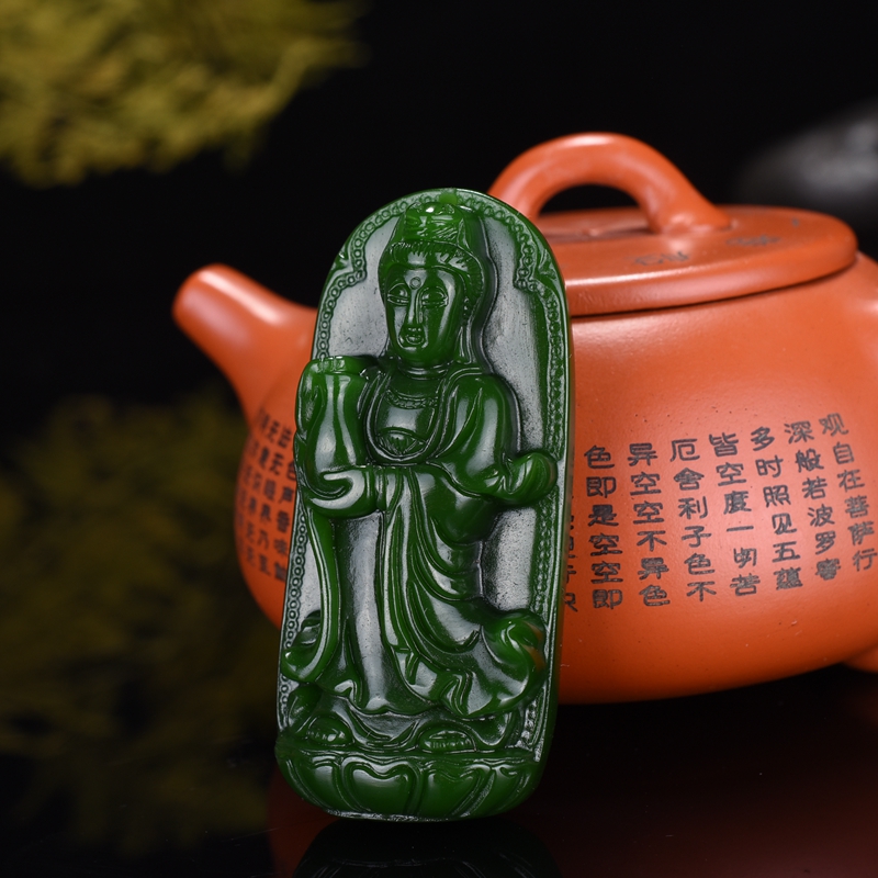 新疆和田玉石吊坠碧玉观音玉牌菠菜绿站观音白玉玉坠男款项链挂件