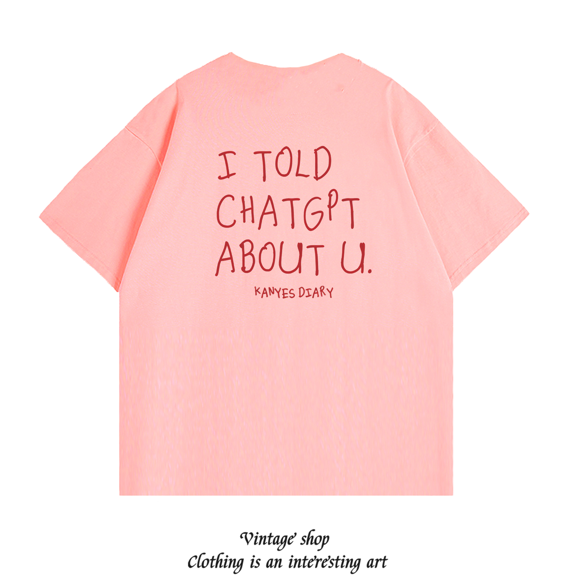 I TOLD CHATGPT ABOUT YOU 趣味创意设计印花短袖纯棉个性美式t恤