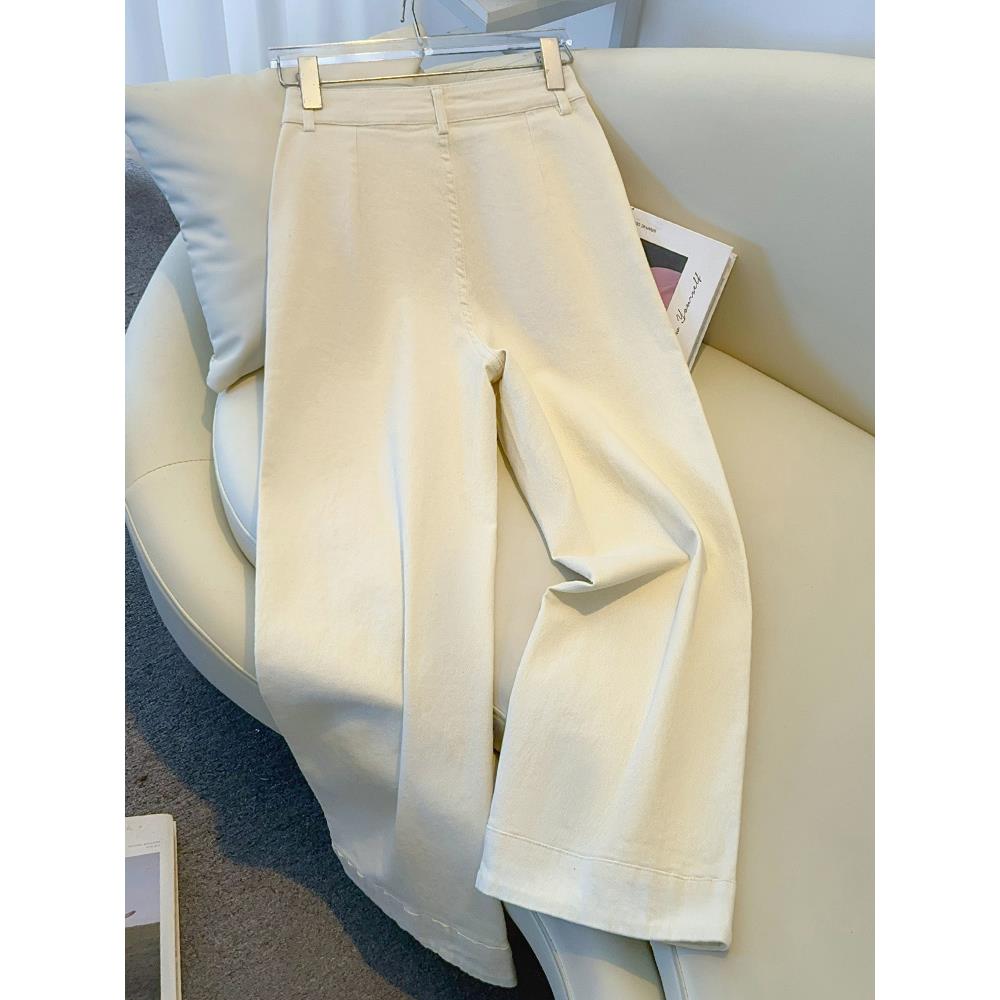 白色牛仔阔腿裤女春夏2025新款高腰宽松高级垂感浅色小个子直筒裤