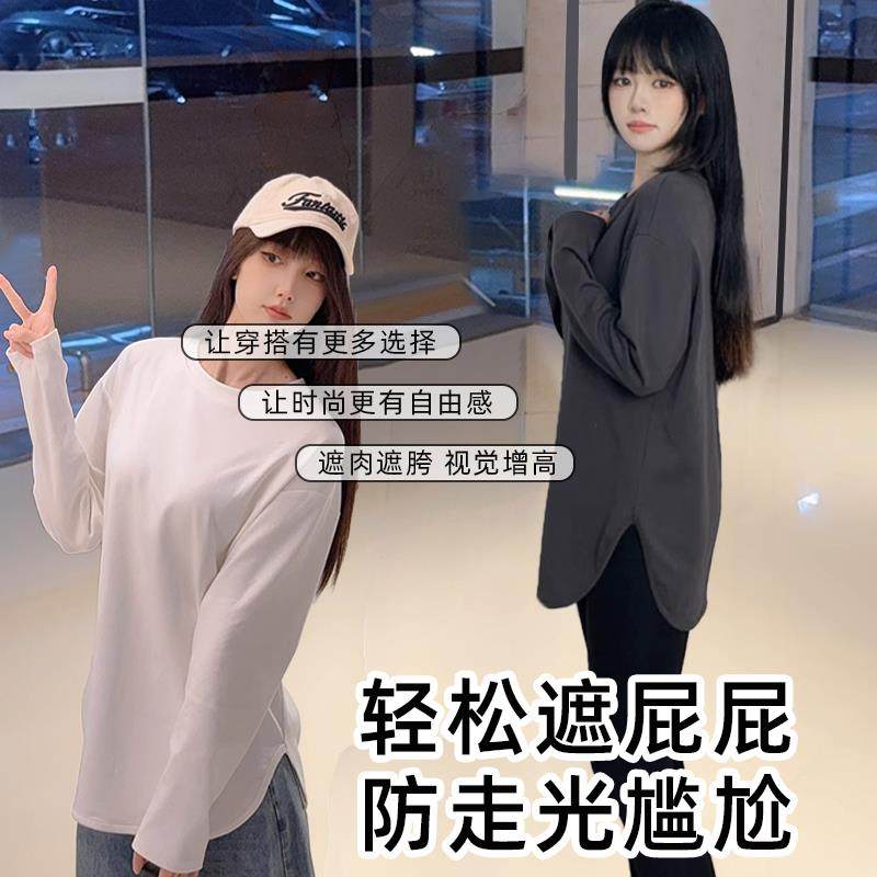 白色打底衫T恤鲨鱼裤的搭配上衣遮屁股中长款女纯棉内搭2025新款