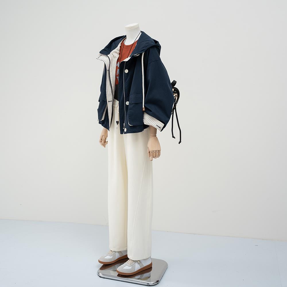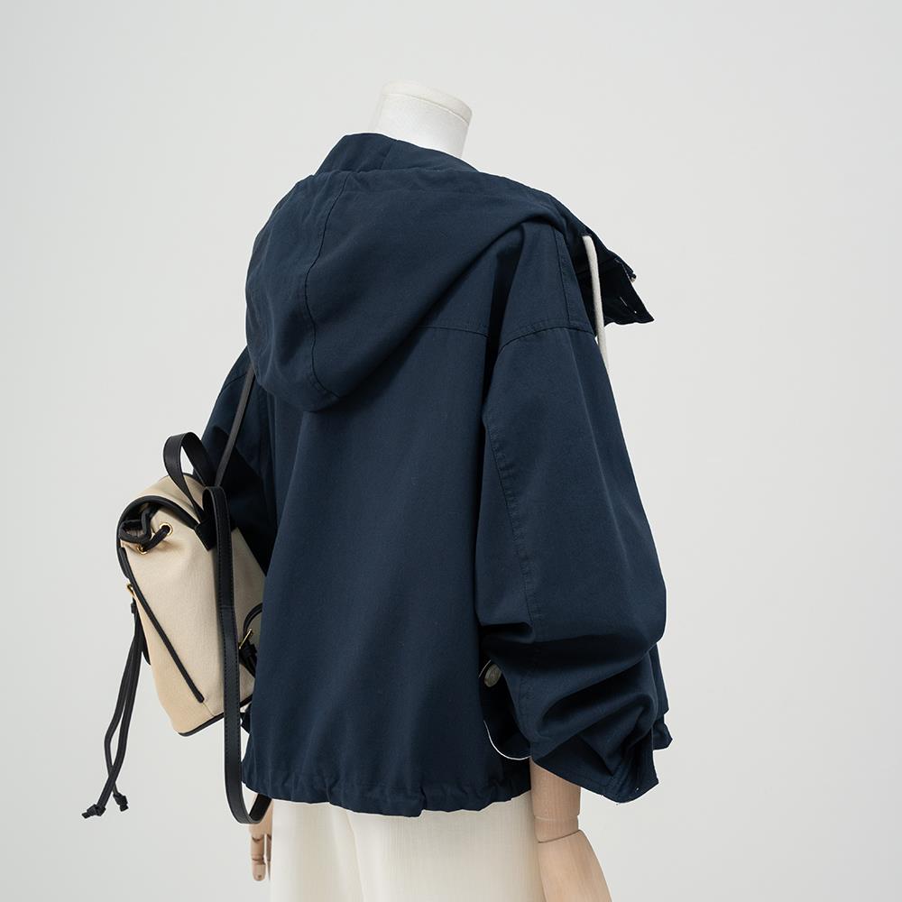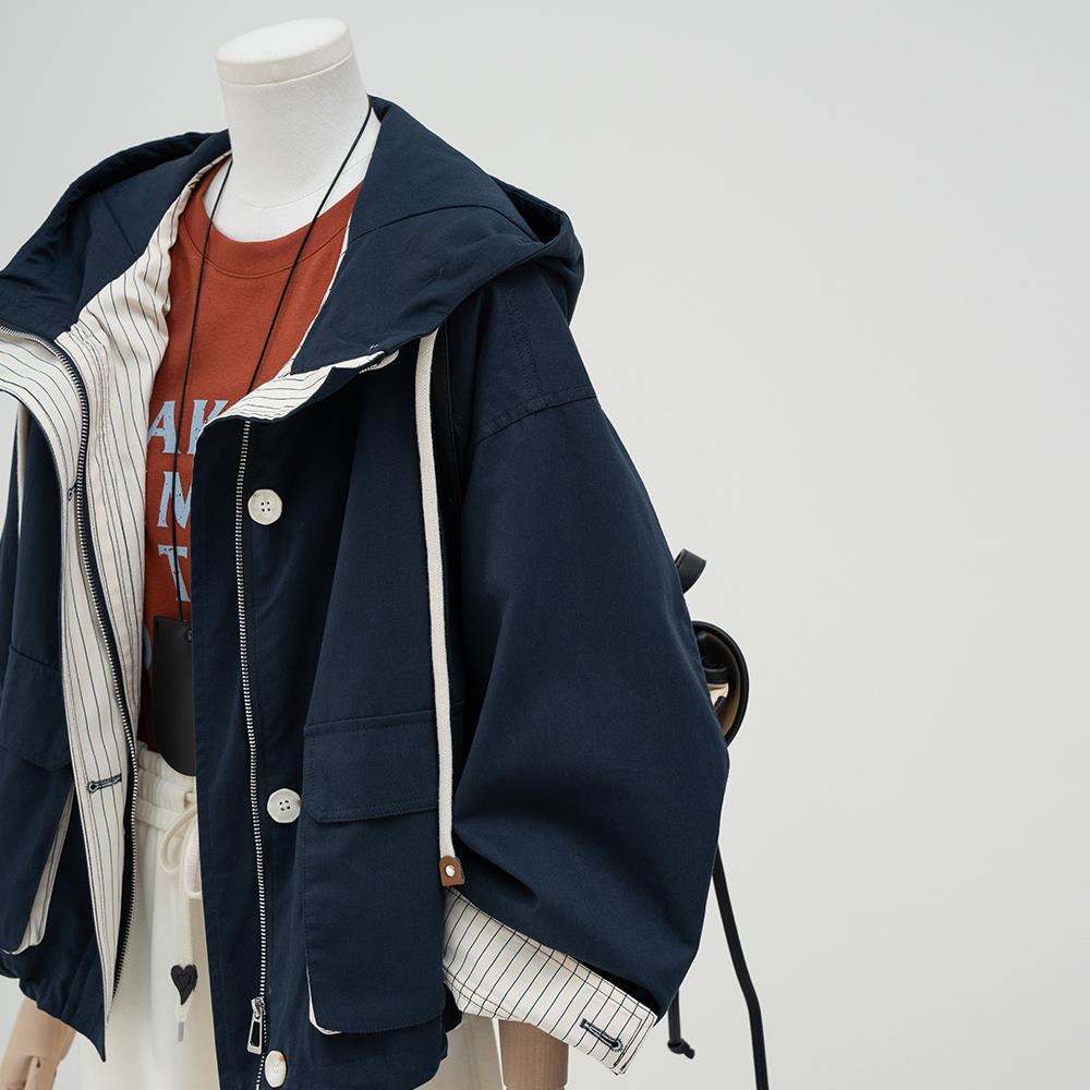 韩系工装连帽风衣外套女2025春季新款小个子宽松休闲短款夹克上衣