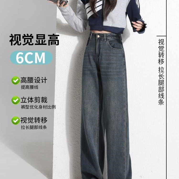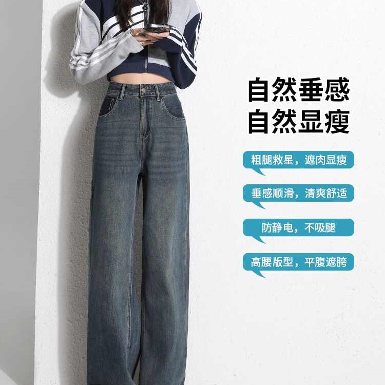 复古阔腿牛仔裤女2025年夏秋季新款高腰宽松遮胯显瘦直筒长裤子潮