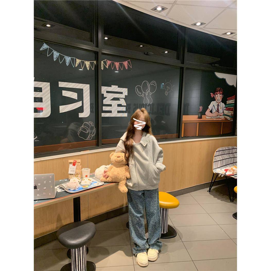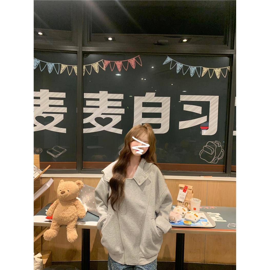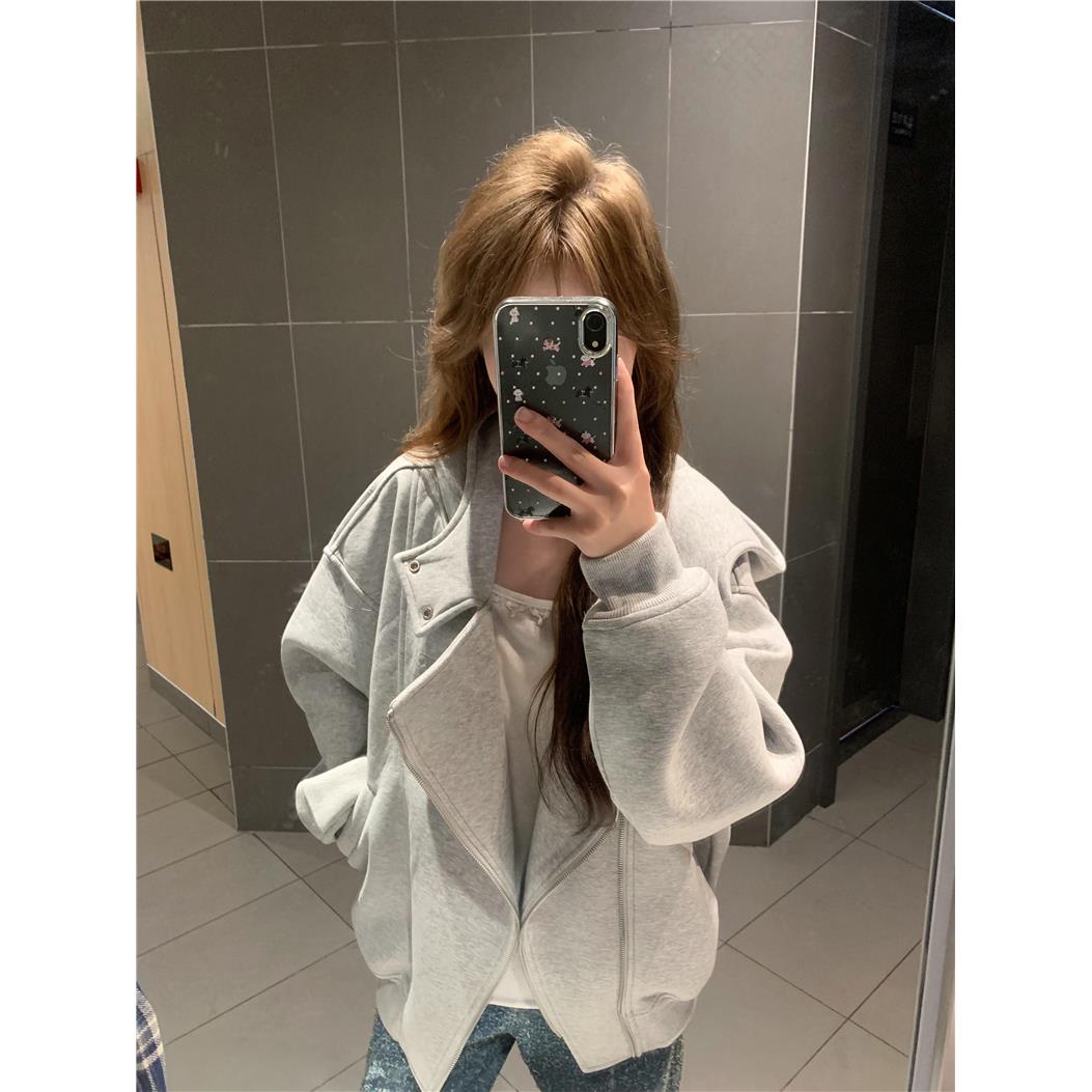 韩系设计感独特超好看外套女早秋2025新款美式高级感灰色连帽卫衣