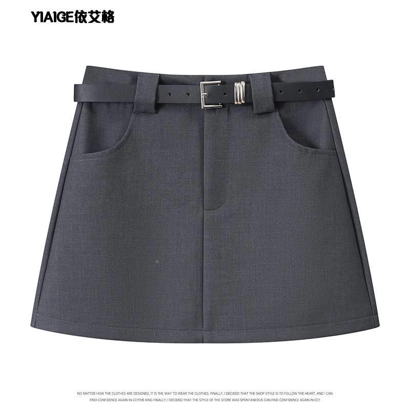 春灰色西装半身裙女款夏2025新小240225-9个子辣臀妹高腰包a字短