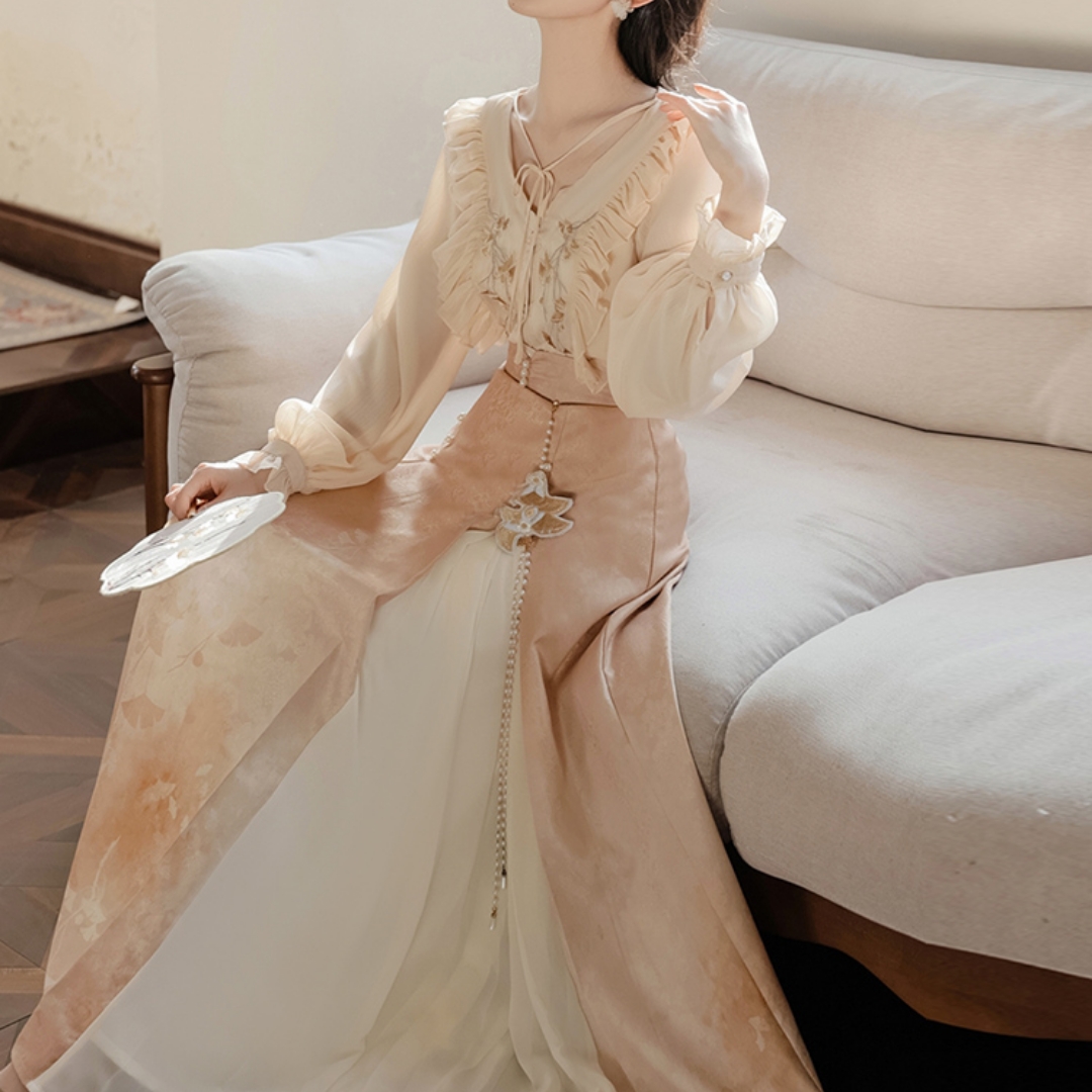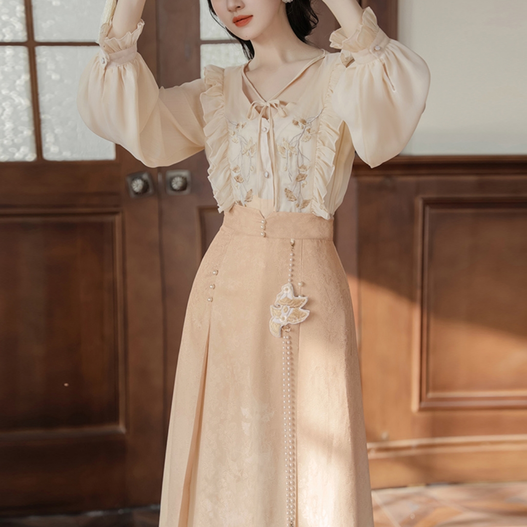 原创改良汉服女新中式国风日常三裥裙高级感汉元素套装春秋