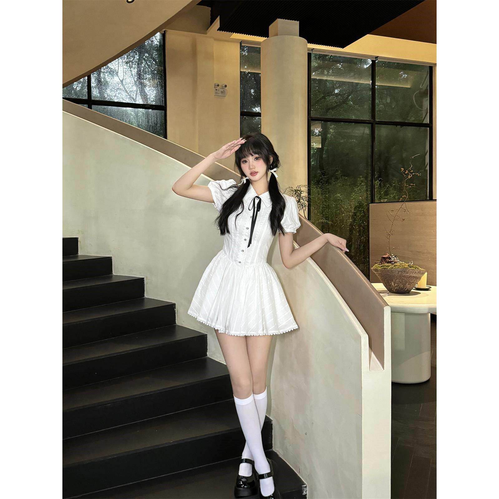 越韩小鱼 学妹你好 甜美少女学院风初恋小白裙蓬蓬裙连衣裙