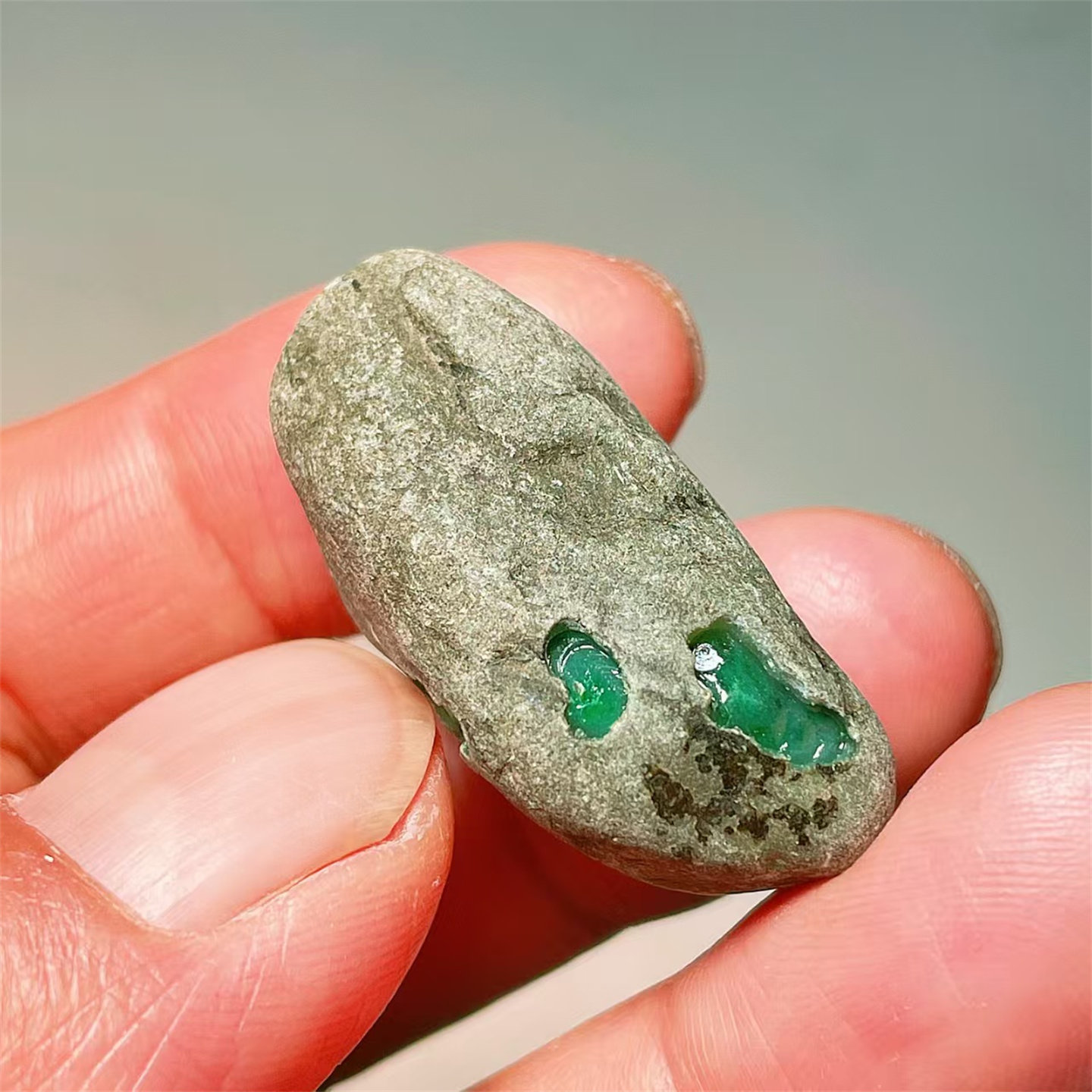 A44 精品缅甸天然翡翠原石老坑后江场口色料戒面料 重19克