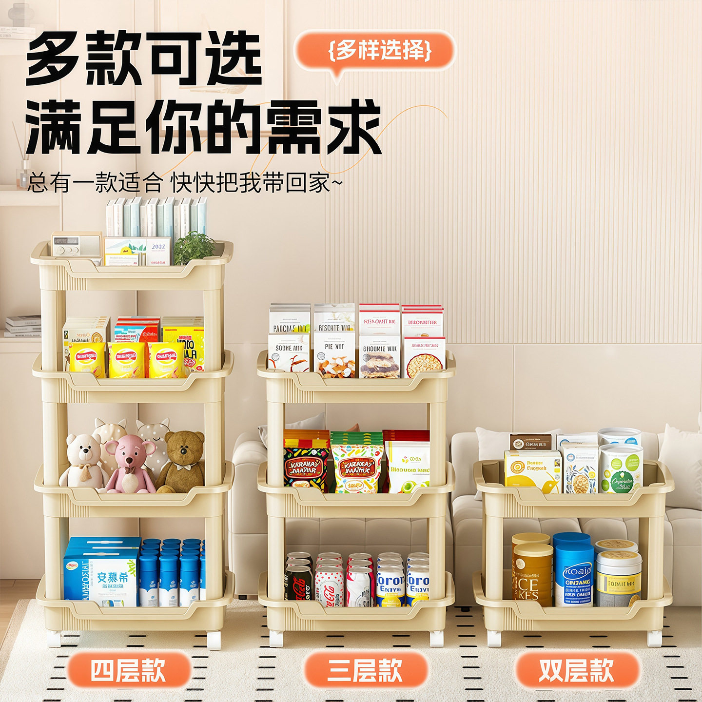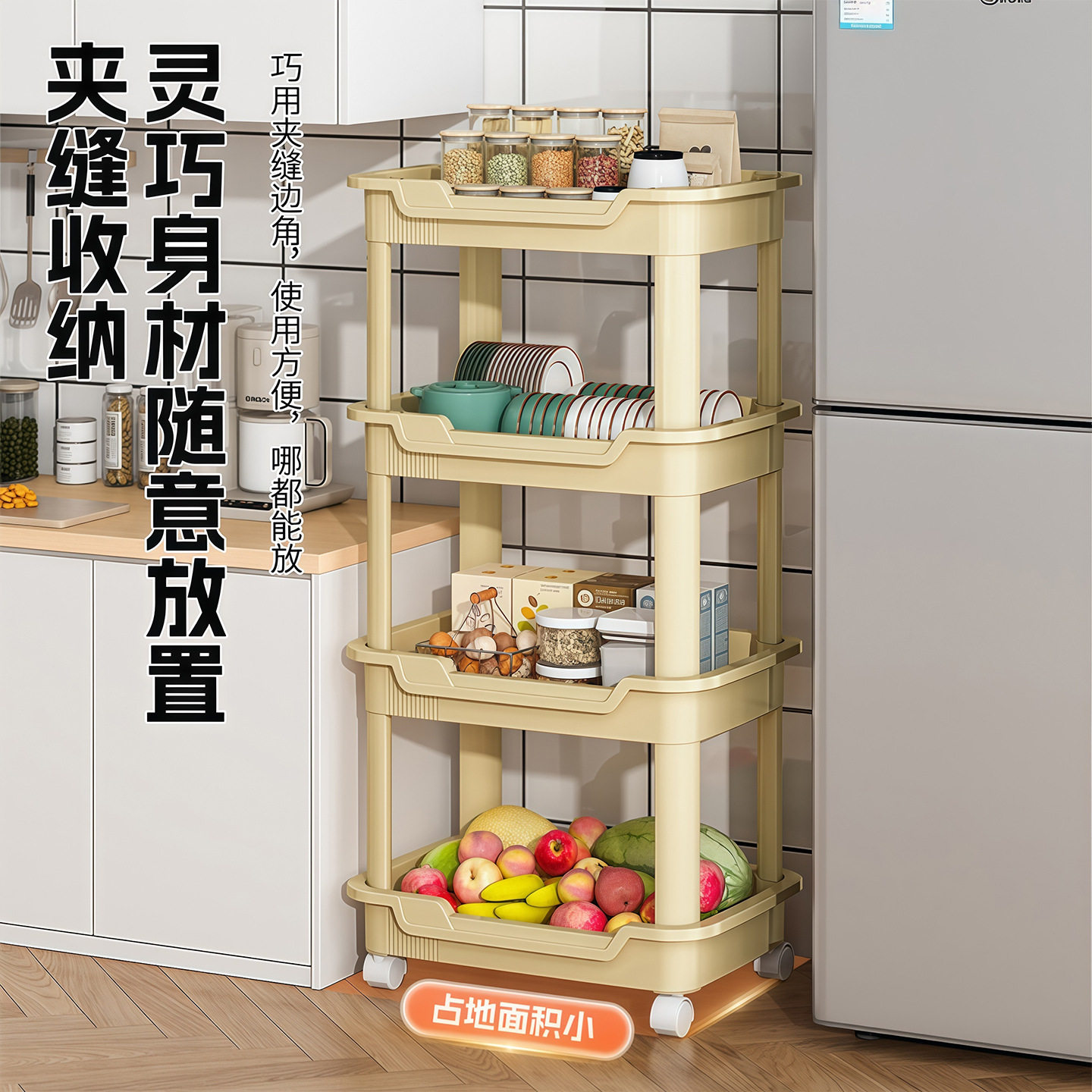 小推车收纳置物架落地多层柜卫生间厨房零食蔬菜护肤品整理架