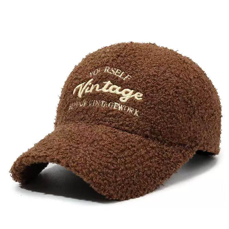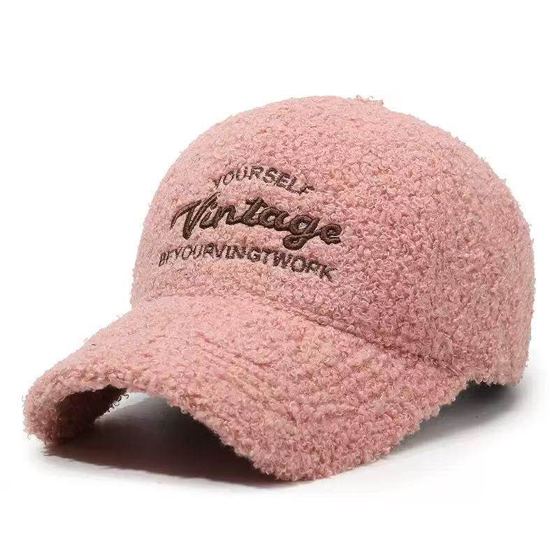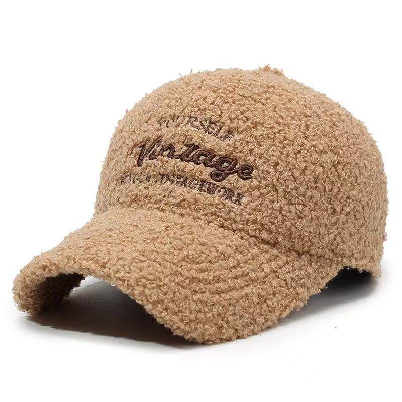 新款时尚复古毛绒棒球帽男女秋冬休闲帽子加厚保暖百搭情侣鸭舌帽