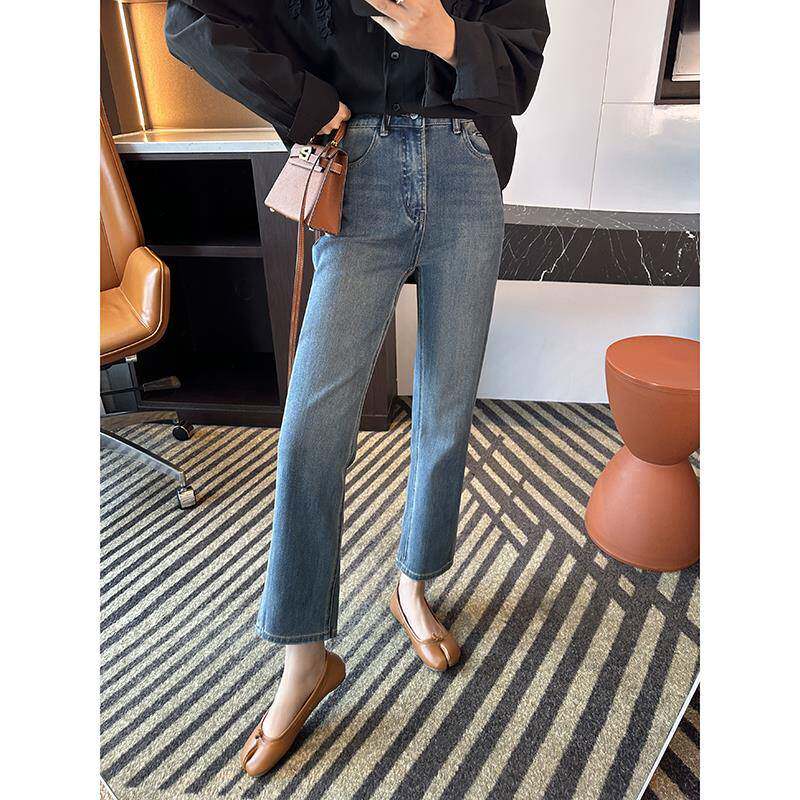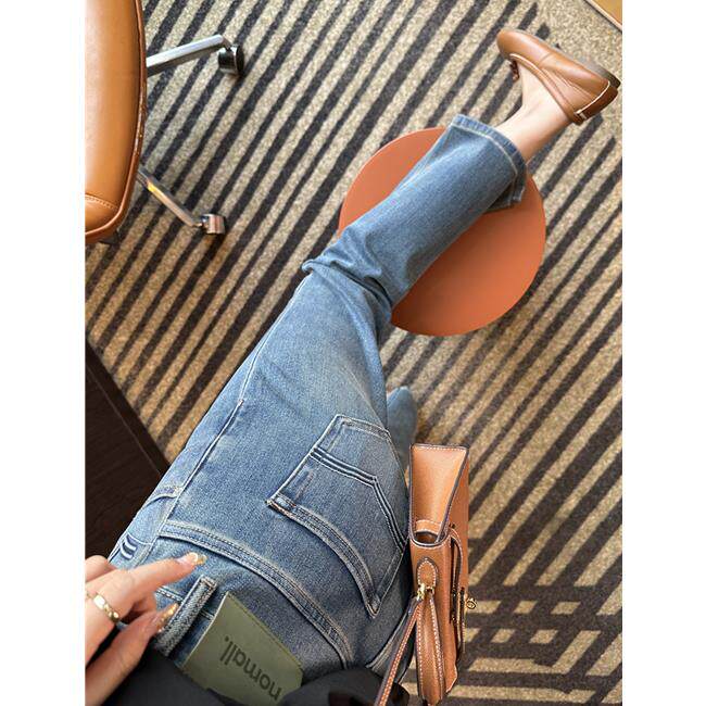 力推!巨好看小绿牌 高腰显瘦烟管牛仔裤女2025春季新九分直筒裤
