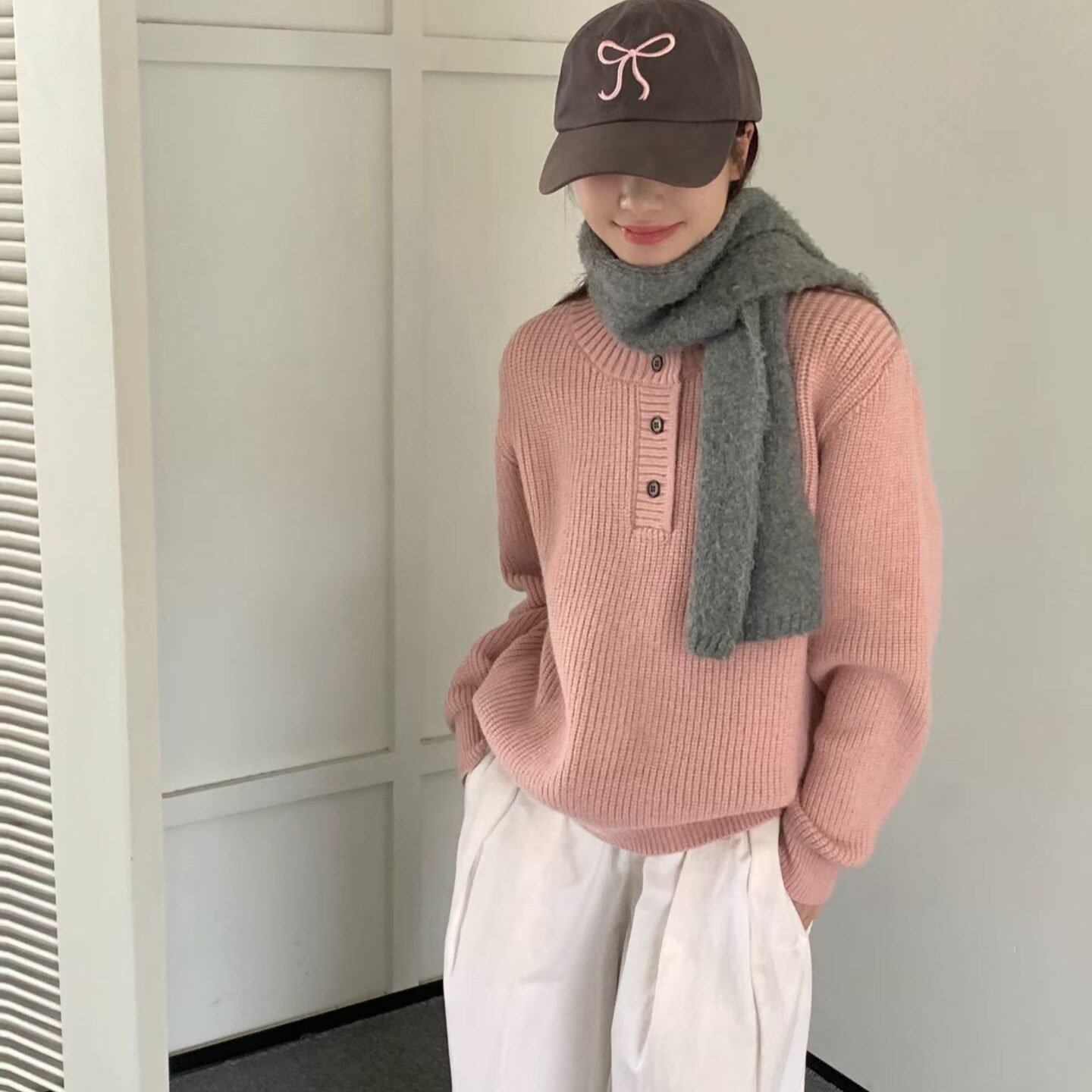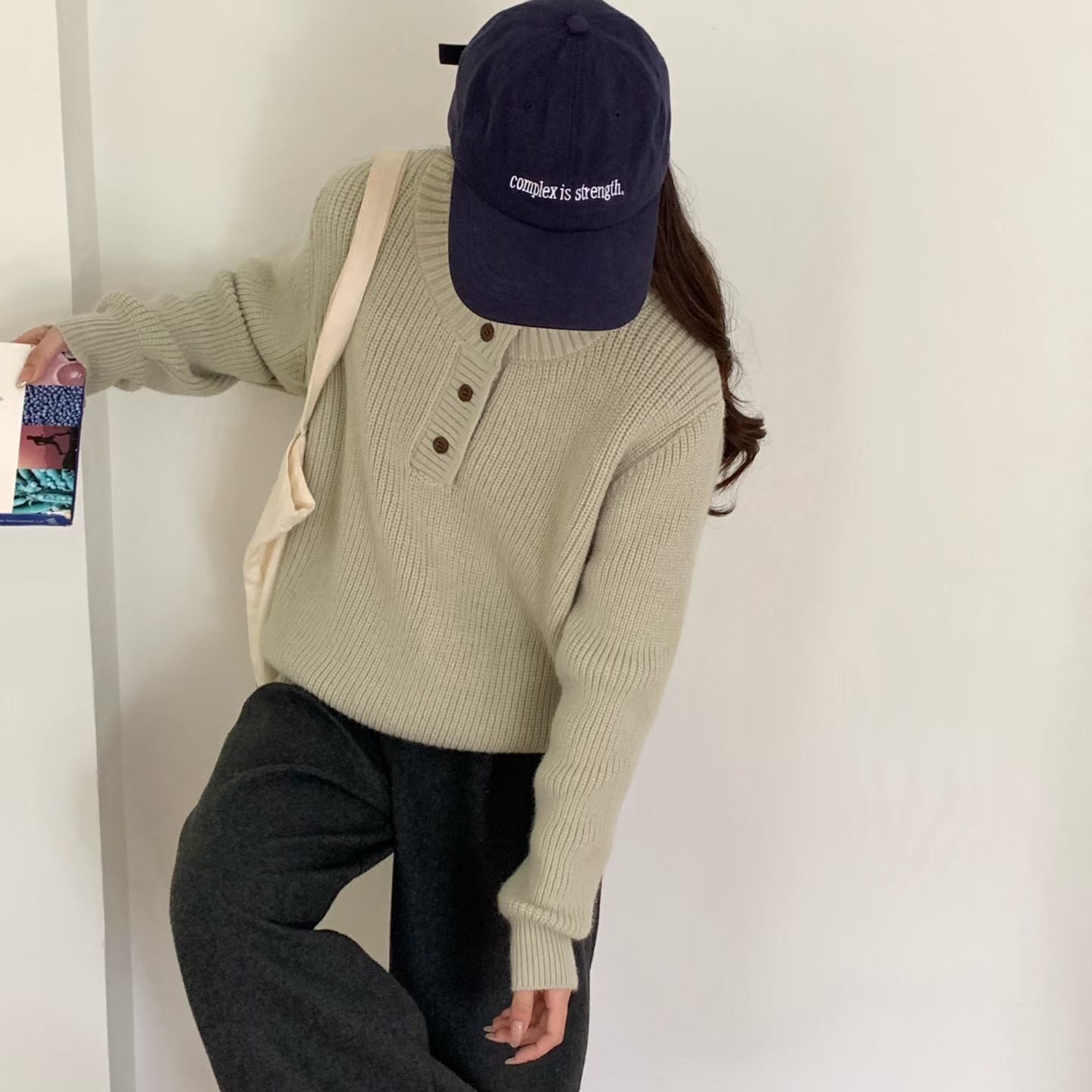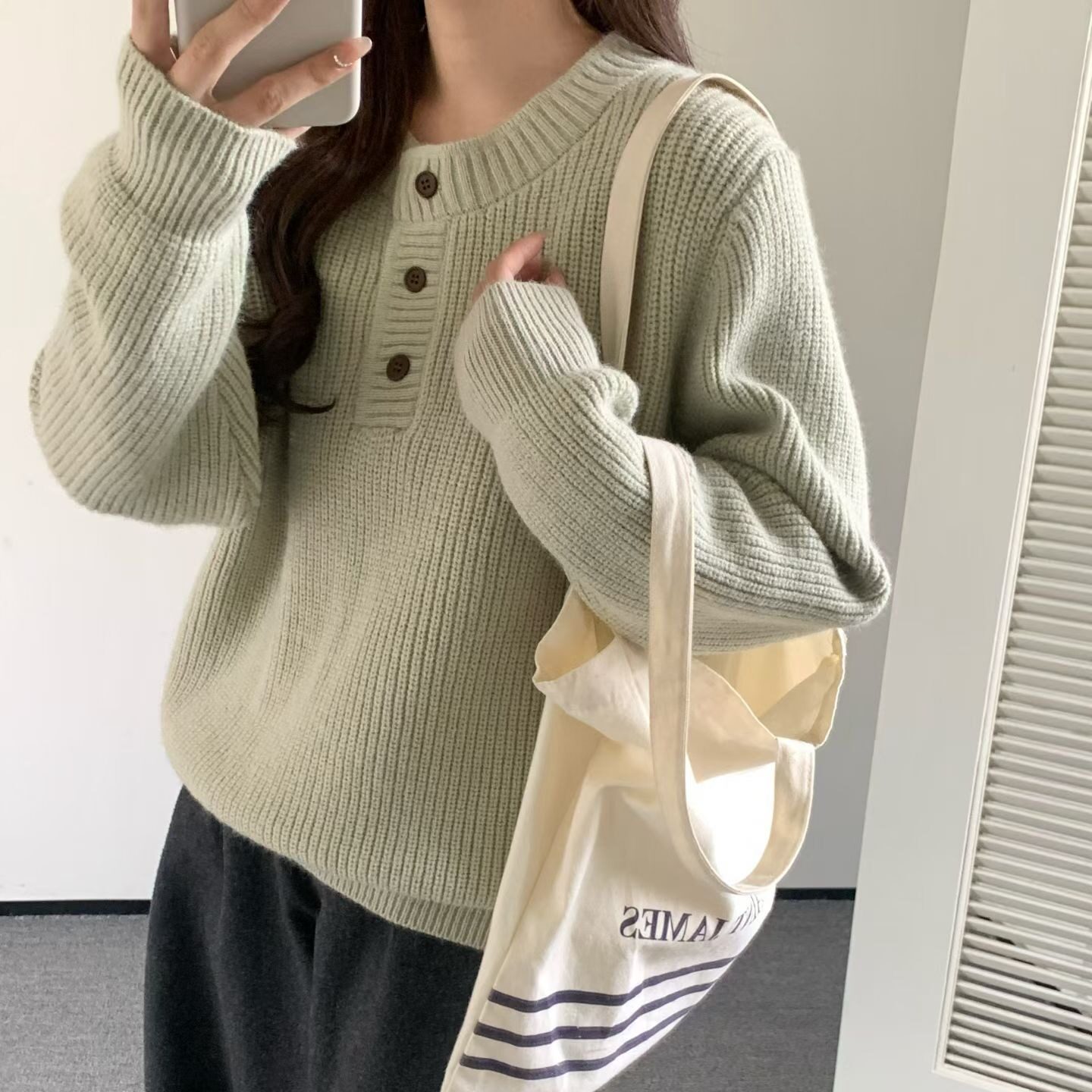 慵懒风圆领加厚毛衣女秋冬2025新款复古设计感显瘦上衣