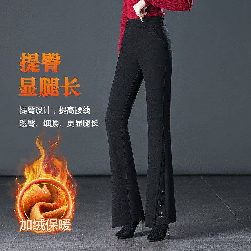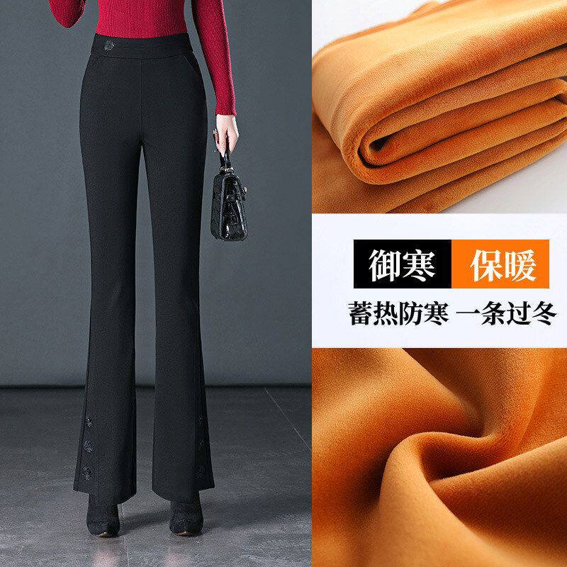 微喇叭裤女冬季加绒加厚裤子高腰显瘦松紧弹力休闲中年妈妈休闲裤