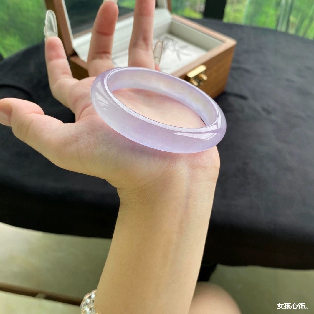 天然缅甸玉镯子浅紫色高冰透翡翠手镯紫罗兰玉镯淡紫细晴水少女