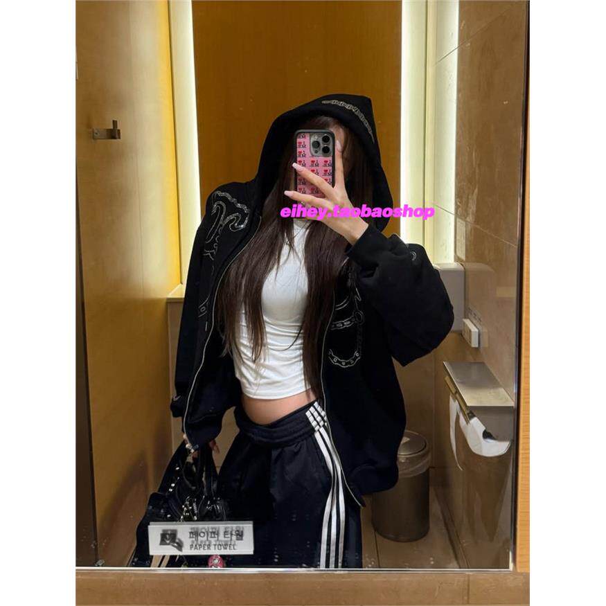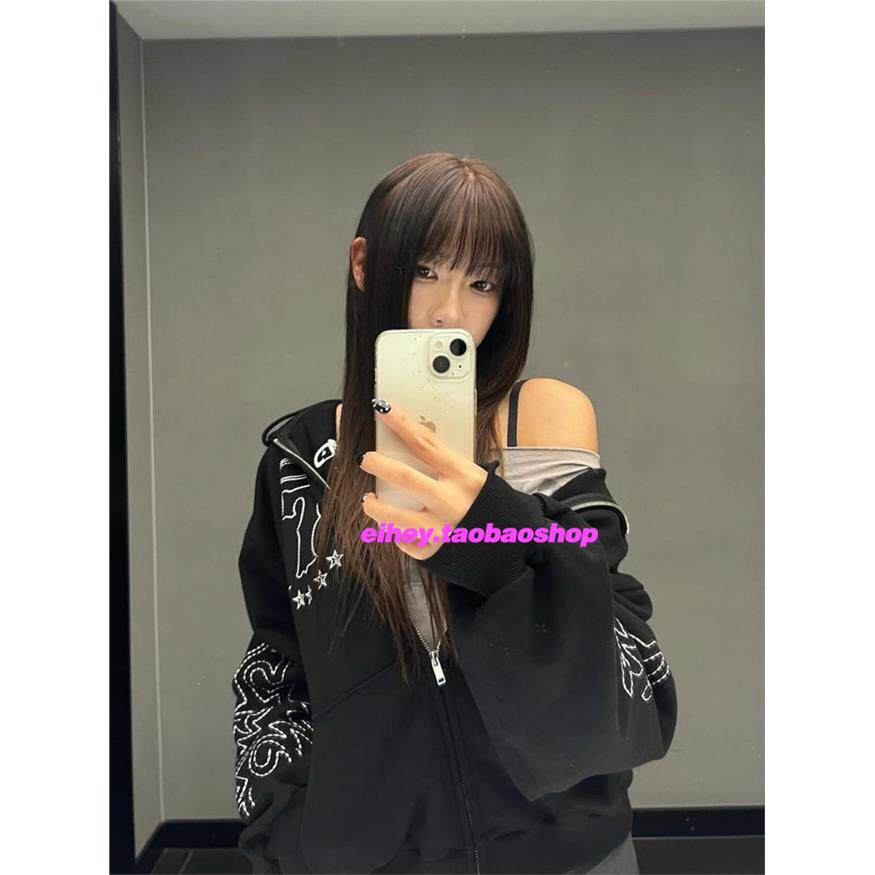 eihey诶嘿25年秋季美式覆古宽松连帽卫衣休闲百搭拉炼上衣外套女