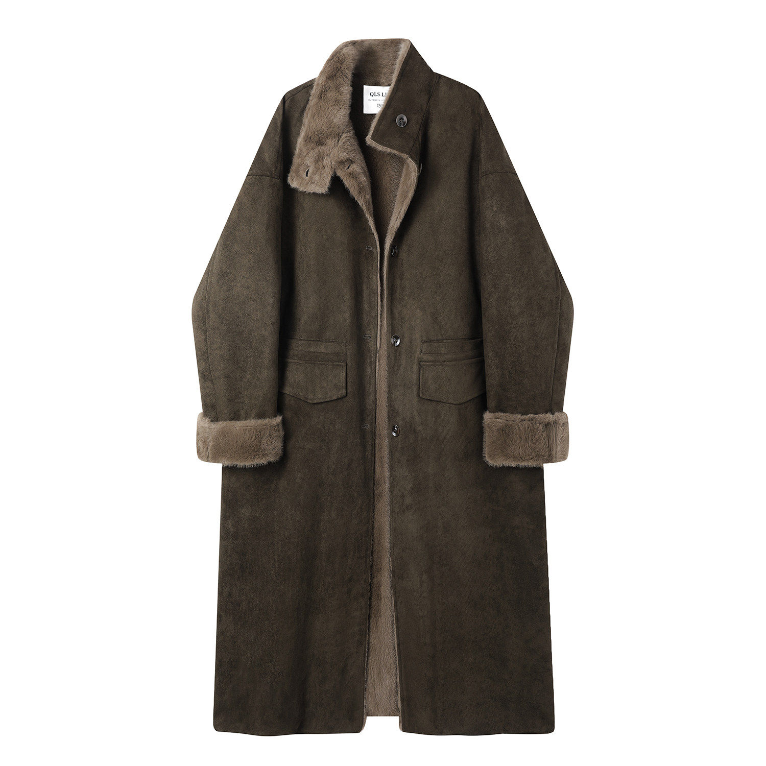 巧丽莎超好看两面穿羊羔毛复古外套女冬中长款加厚麂皮绒毛毛大衣