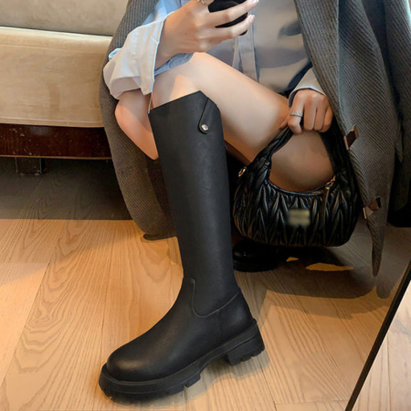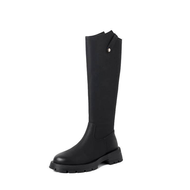 复古显瘦小个子不过膝长靴2025秋冬英伦风后拉链骑士靴高筒马靴女