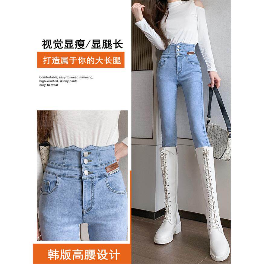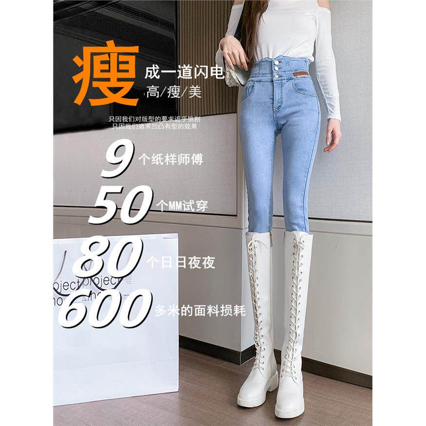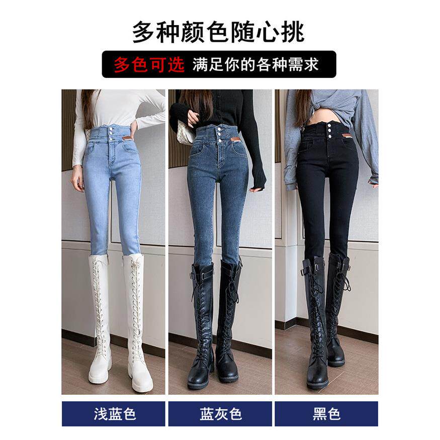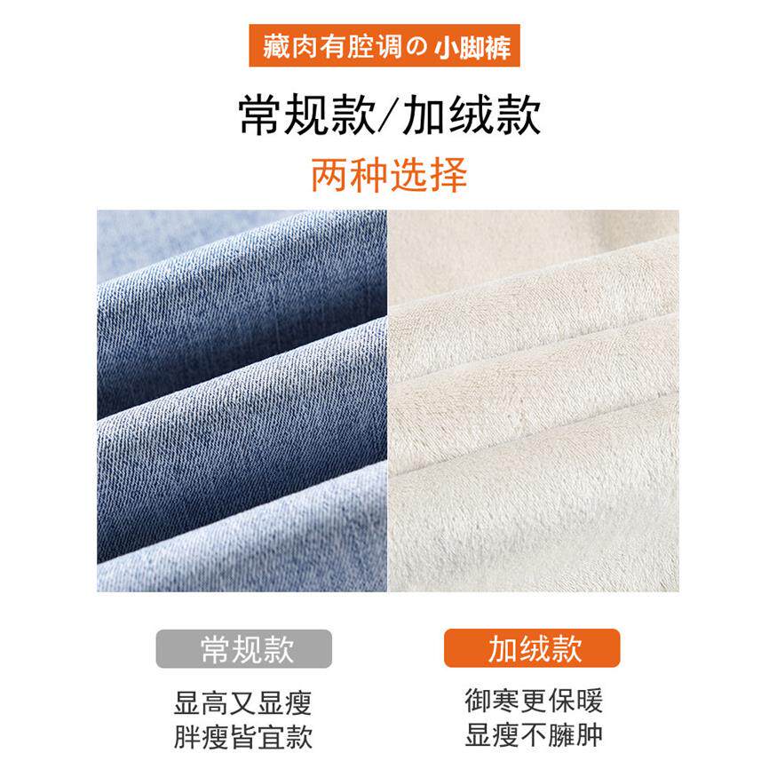 浅色牛仔裤与丝绒女性冬季2025新高腰修身外观加厚紧身女性春秋季