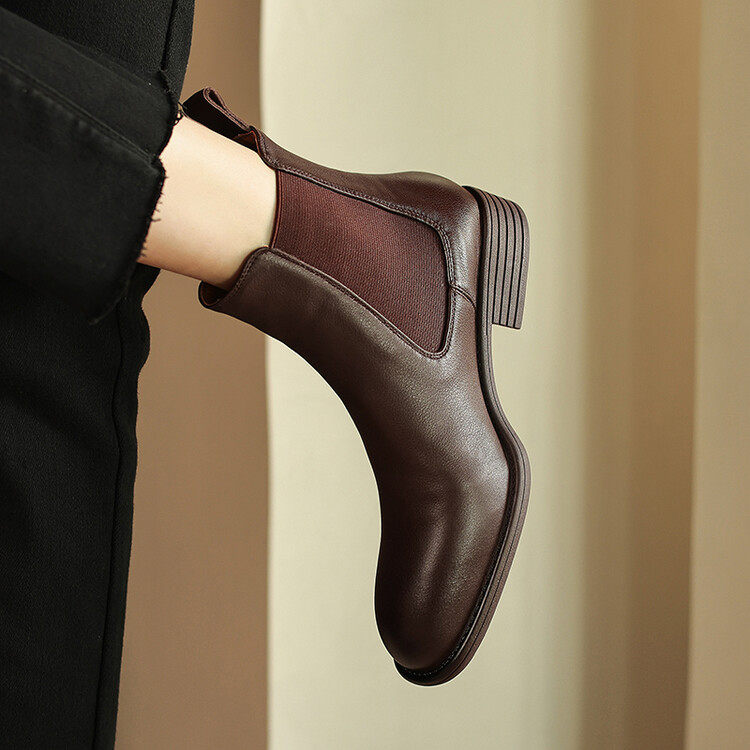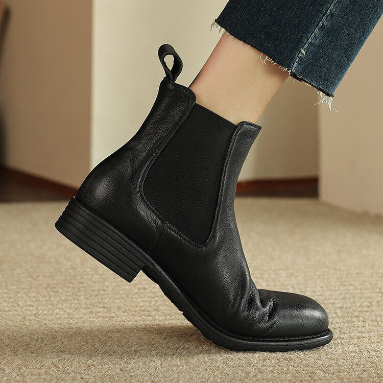 早秋靴子真皮短靴女春秋单靴低跟切尔西靴短筒马丁靴女英伦风平底