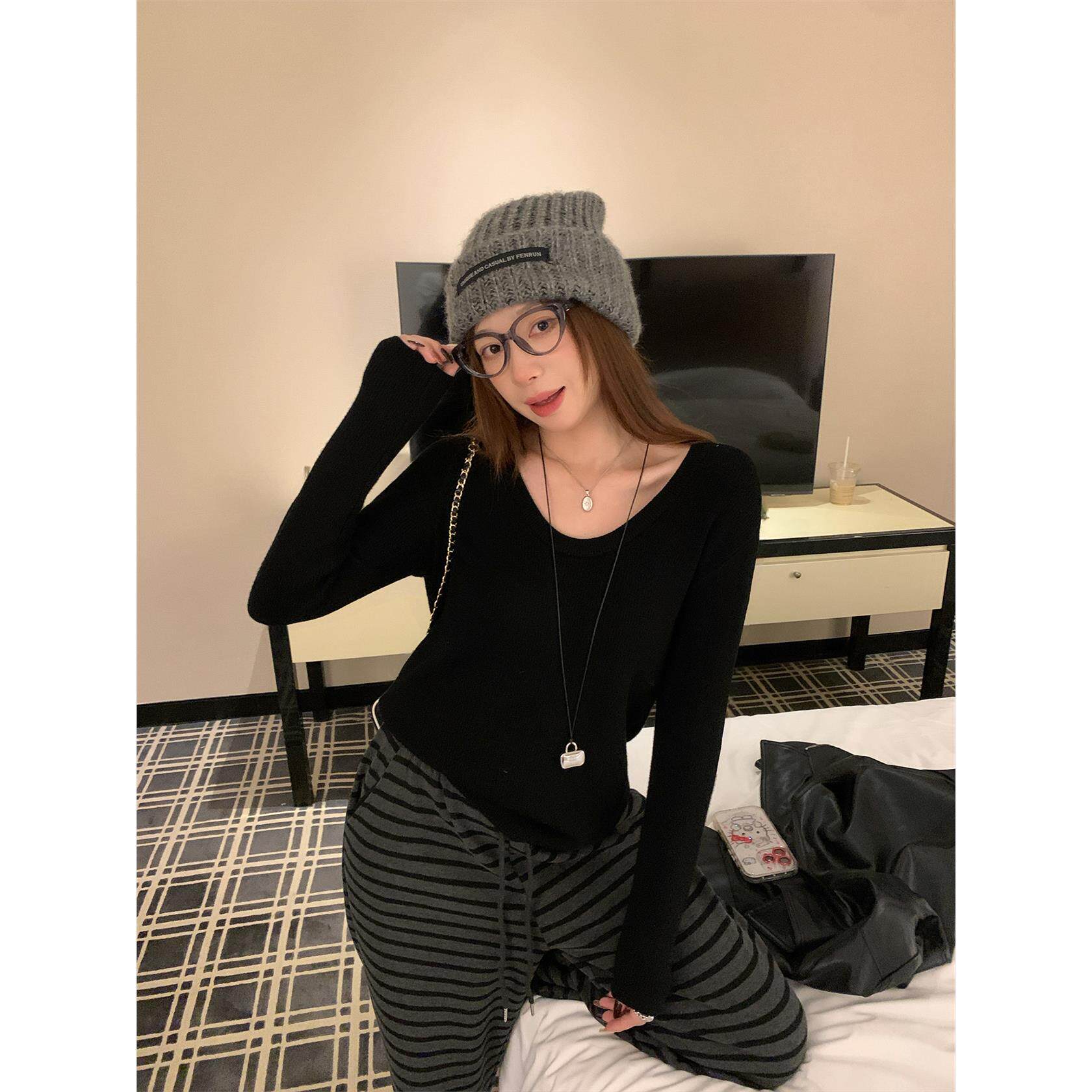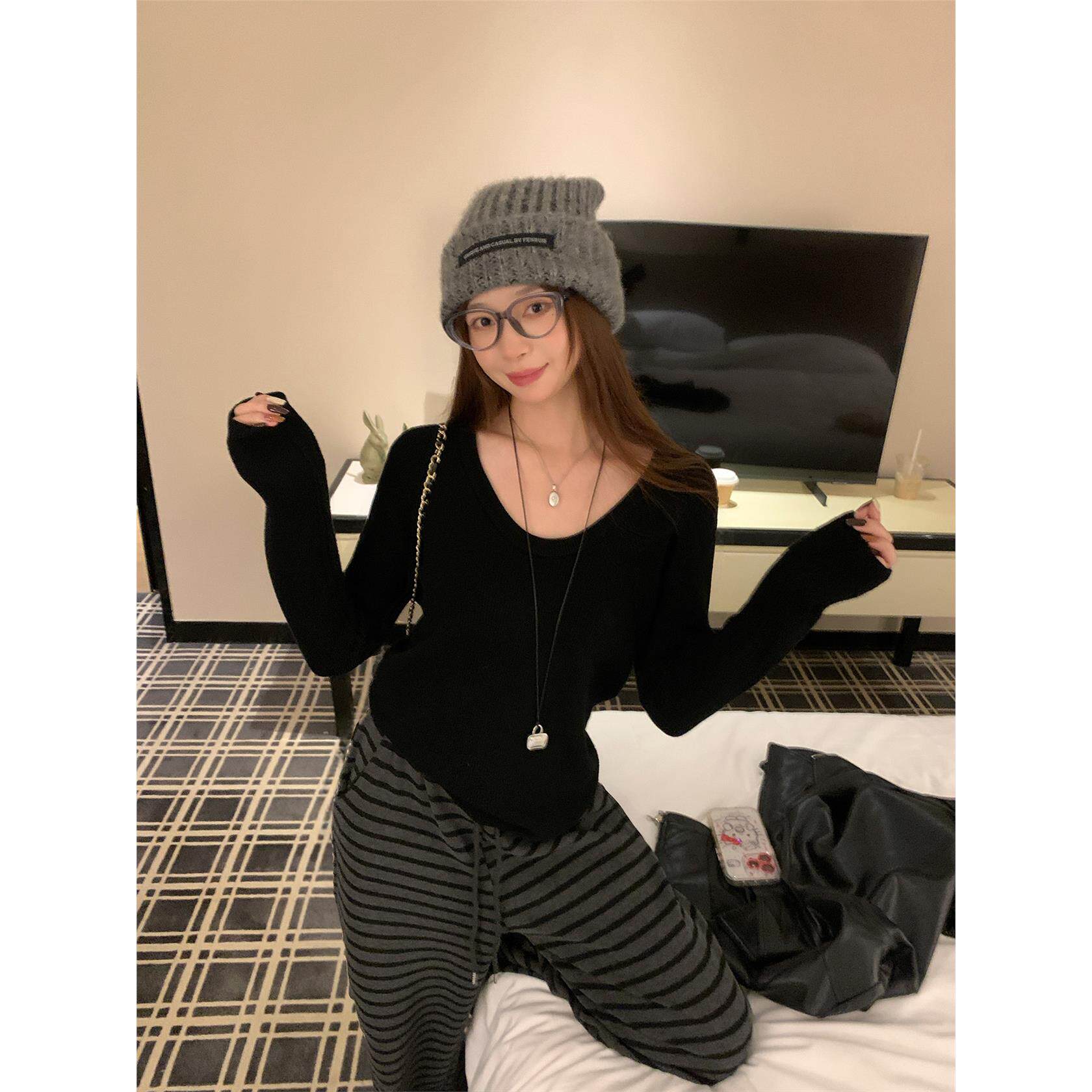 苏三三 加绒毛衣女秋冬内搭可外穿2025新款打底衫冬季加厚v领上衣