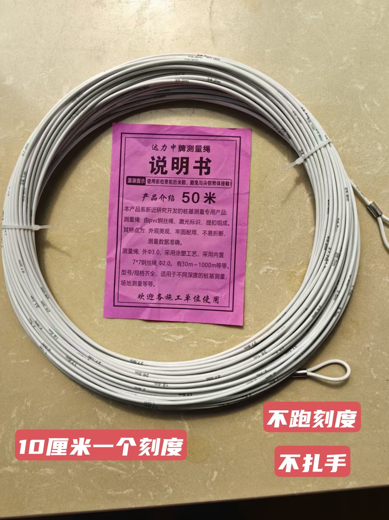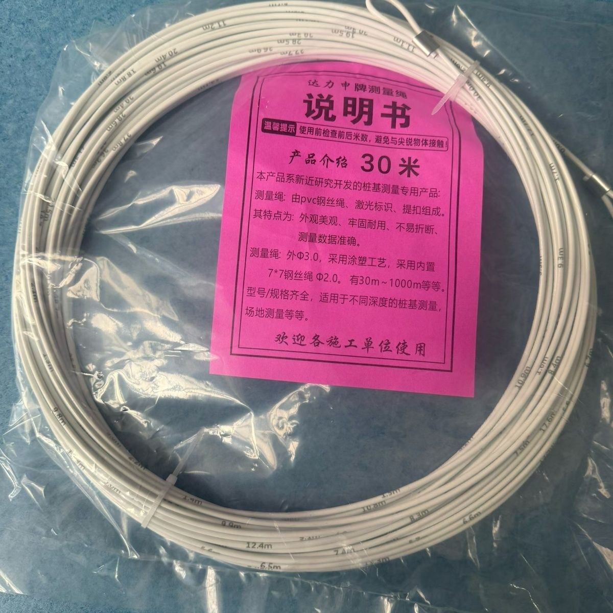 3.0毫米包胶钢丝测量绳30//50/60/70/80/100/200/300米桩基测绘