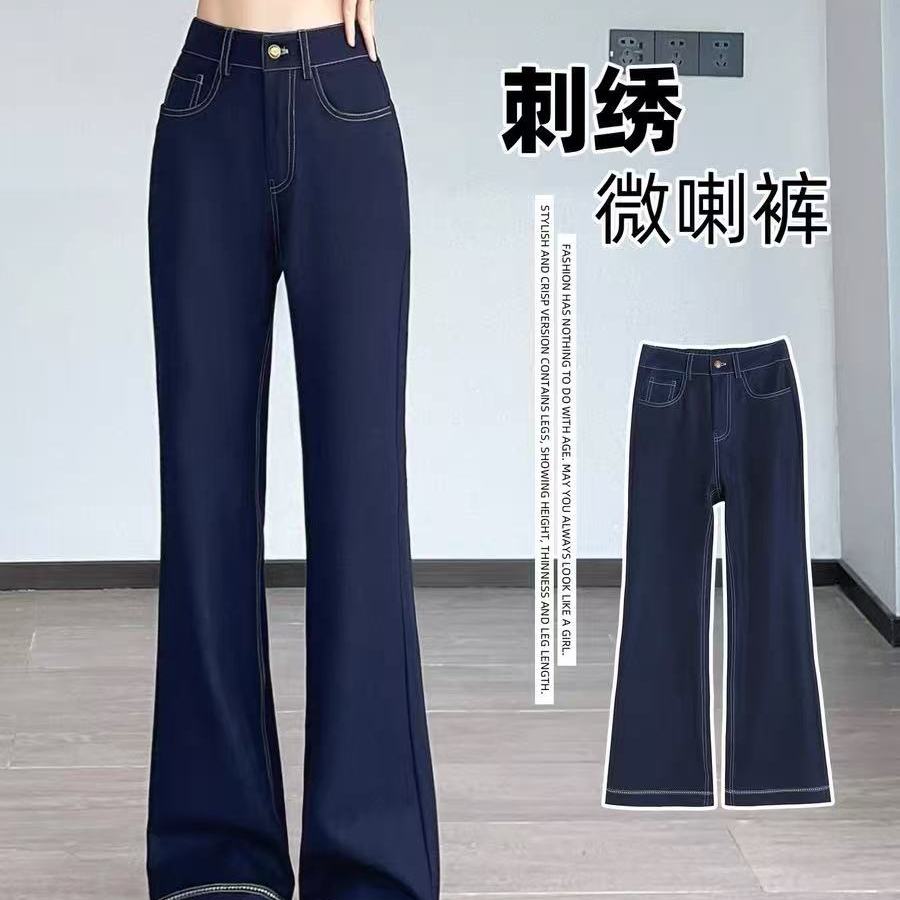 【秋季新款】莱赛尔丹宁蓝牛仔裤时尚高腰显瘦刺绣微喇裤2565