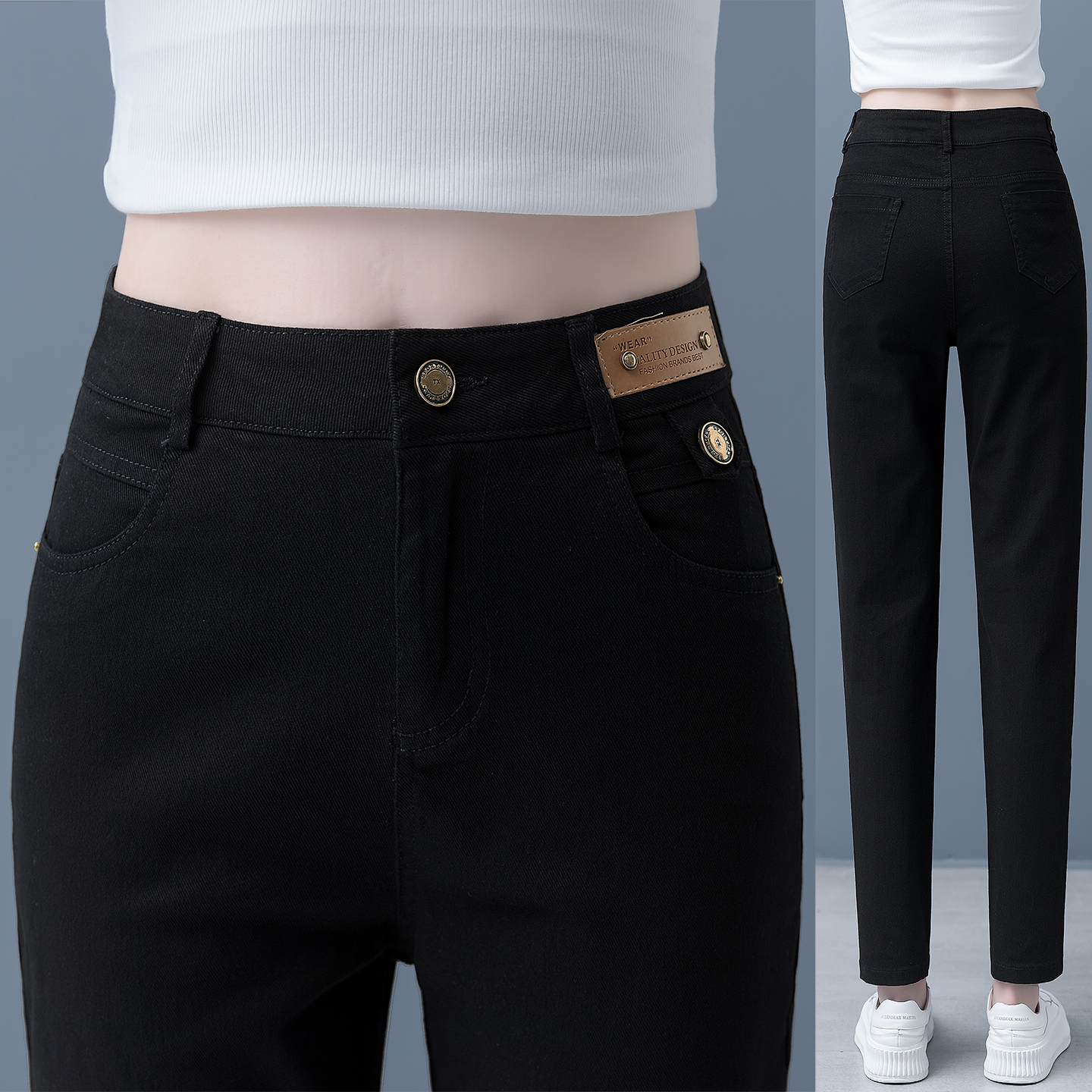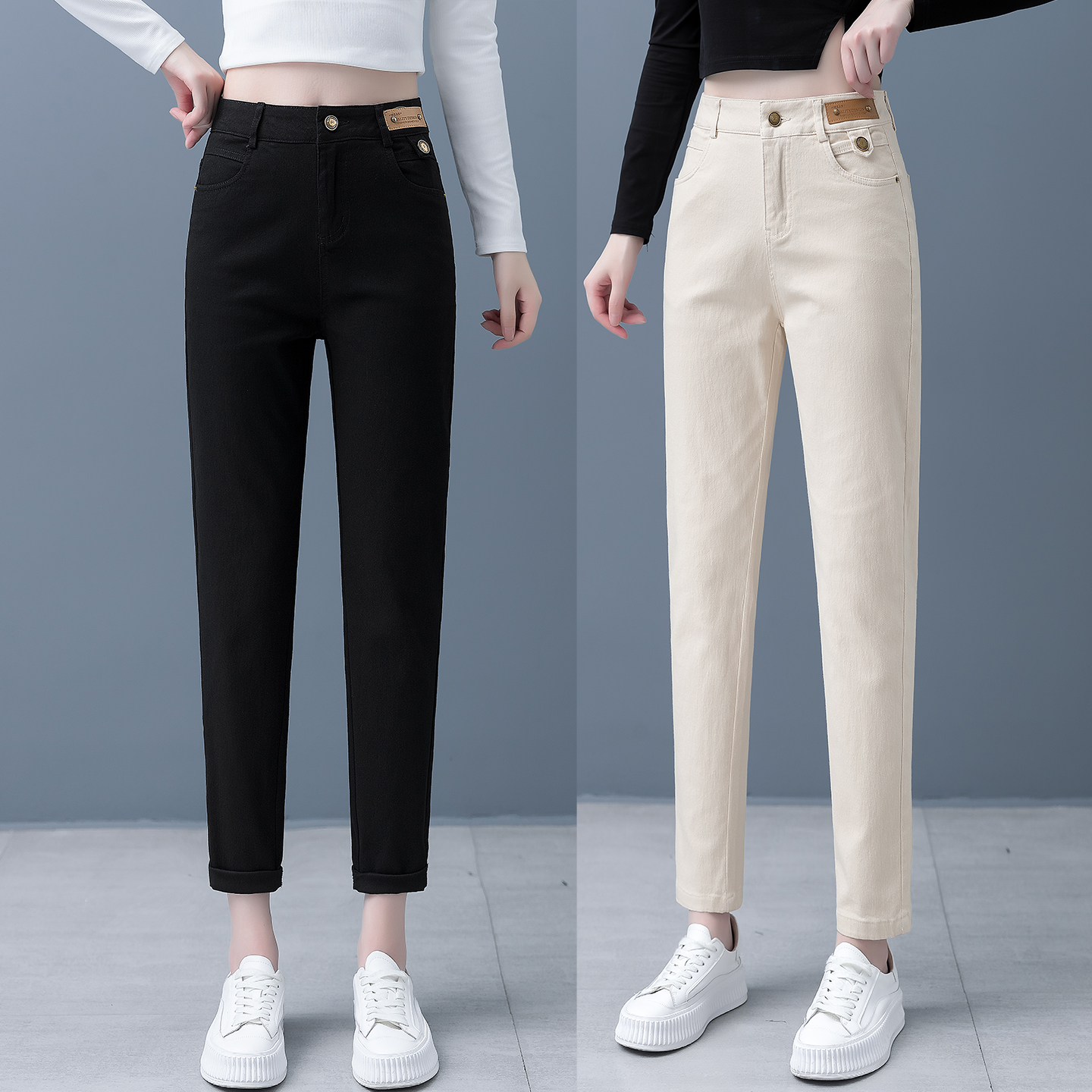 米白色哈伦牛仔裤女秋2025新款高腰休闲烟管裤宽松显瘦九分小脚裤