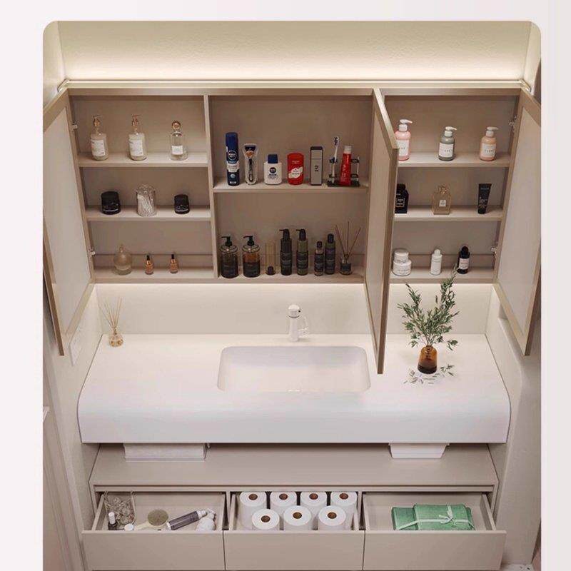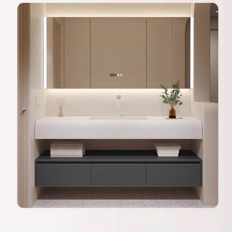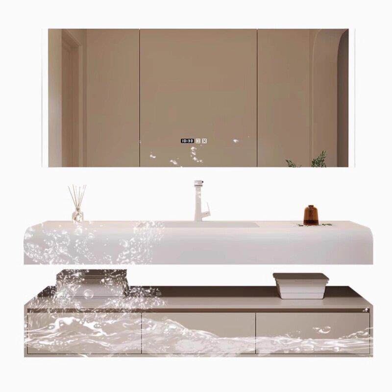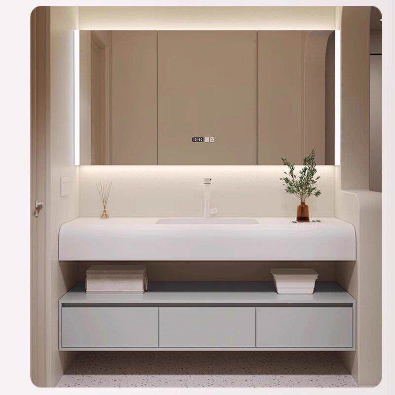 北欧杜丽家岩板热弯一体浴室柜组合智能现代镜柜台面化妆室洗脸盆