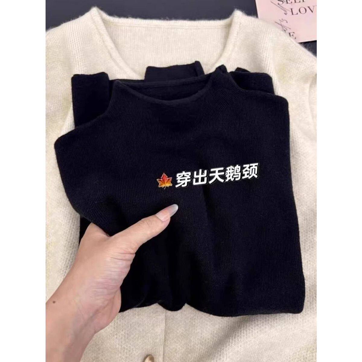高端小资文艺复古橘色立领打底衫女秋冬内搭毛衣叠穿长袖针织上衣