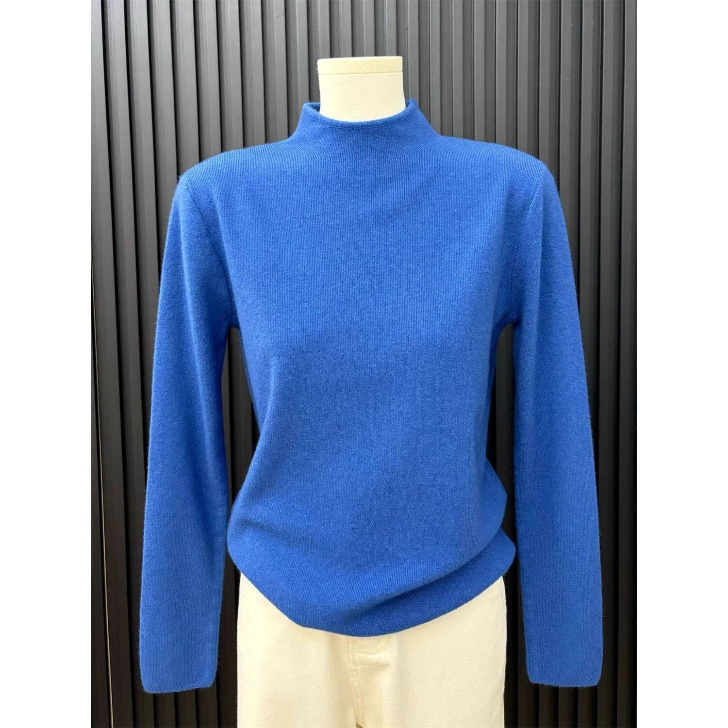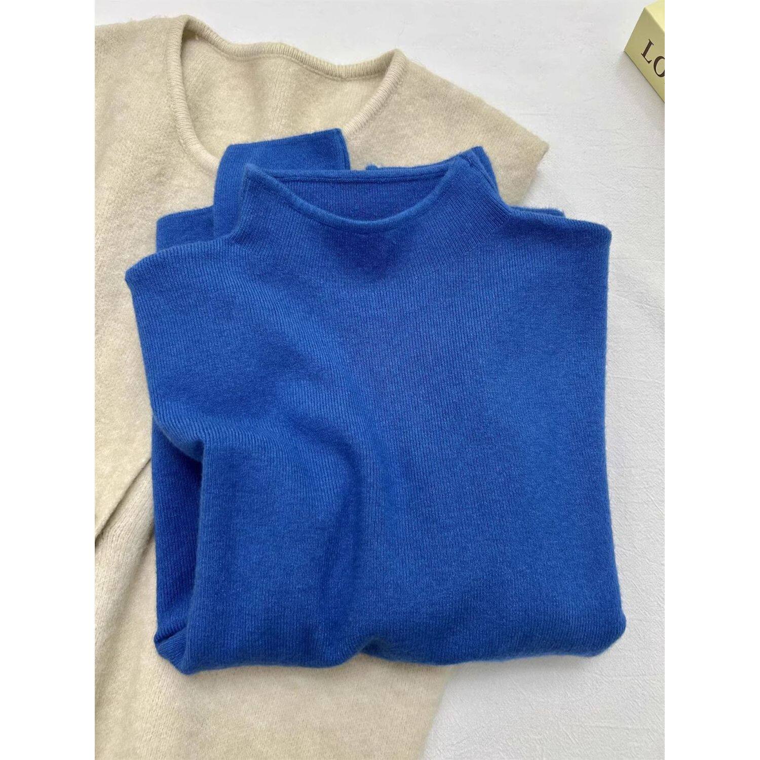 巨好看克莱因蓝毛衣女秋冬高级感叠穿半高领内搭针织打底衫上衣