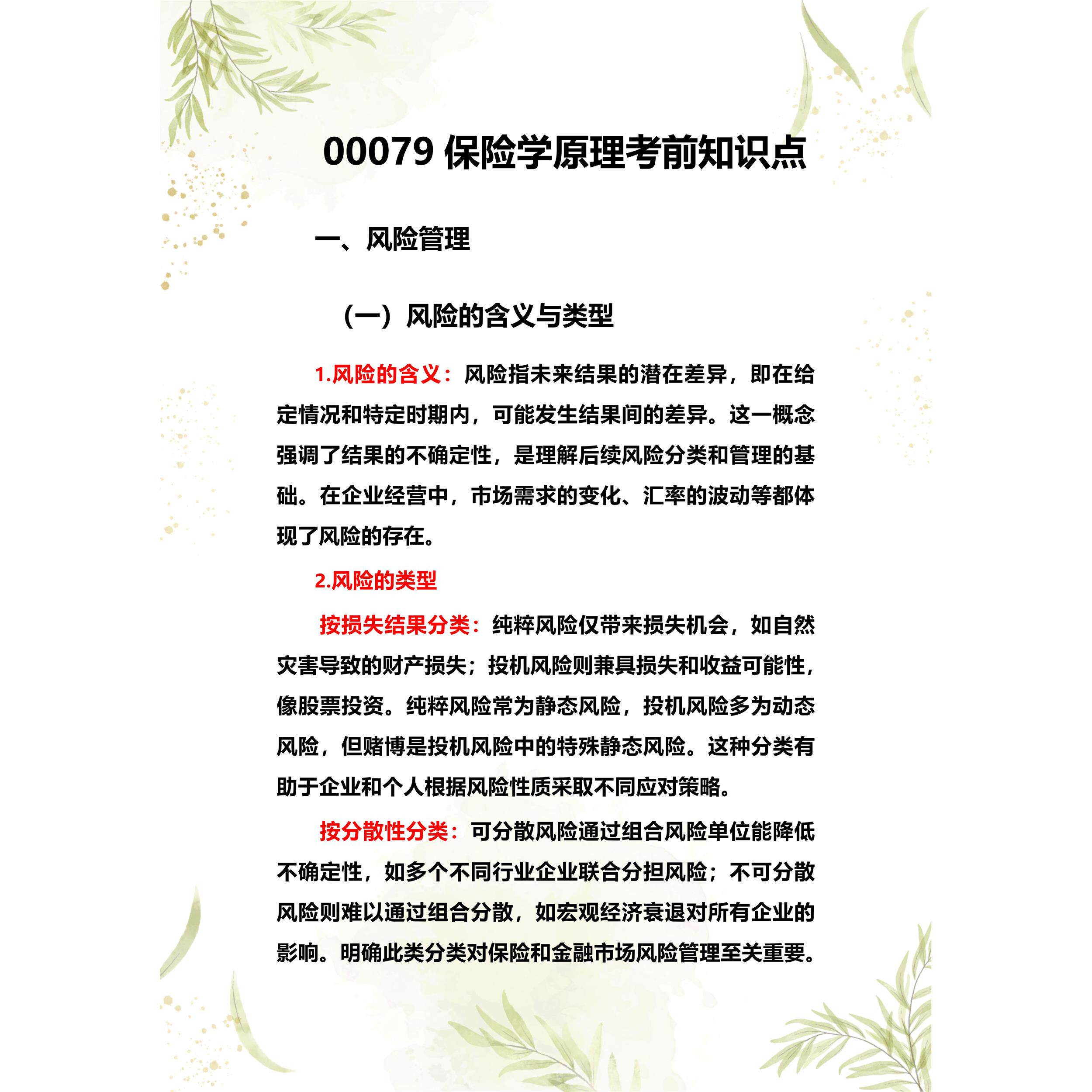 考点重点 00079保险学原理 考纲讲解自考笔记 资料 自考复习过关思维导图 精讲视频网课 考前押题资料