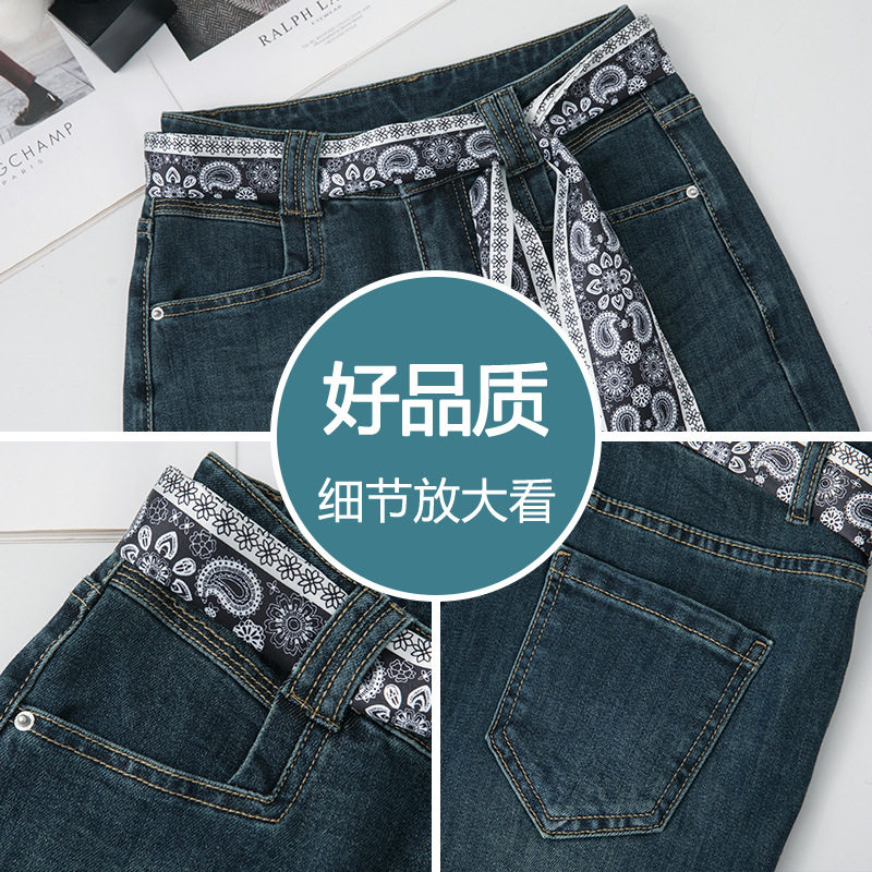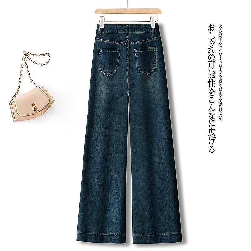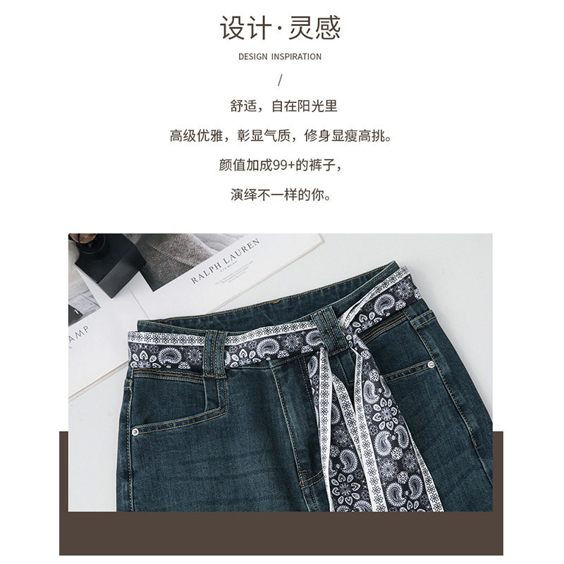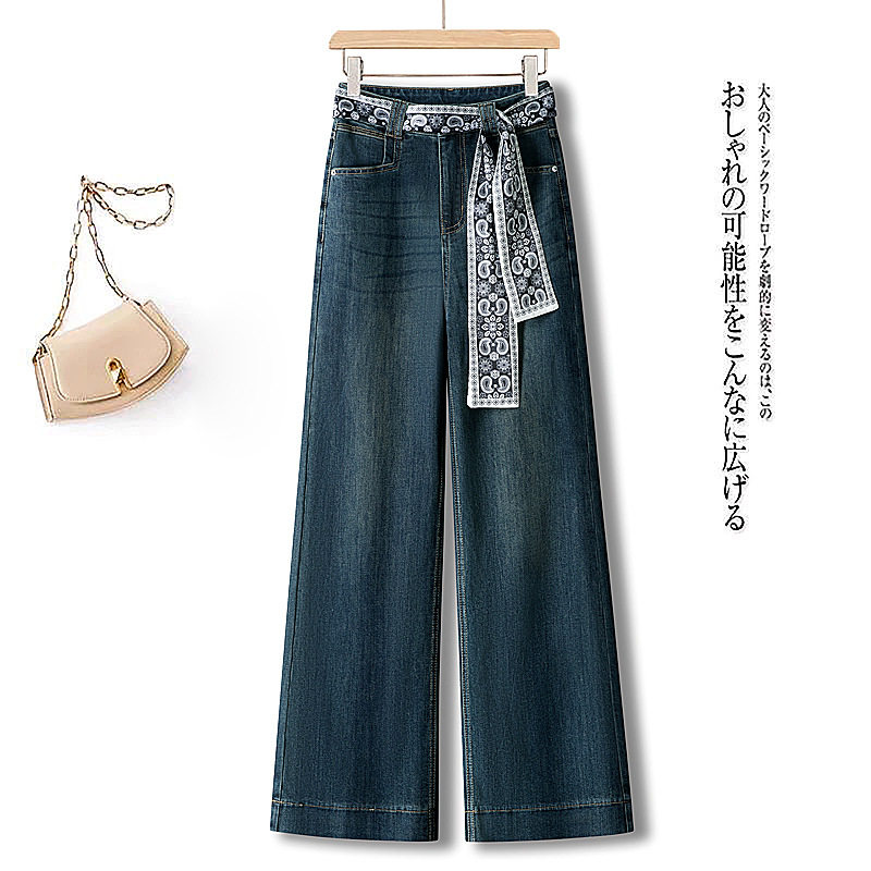 时尚丝巾复古阔腿牛仔裤女春夏2026新款减龄休闲裤垂感高腰直筒裤