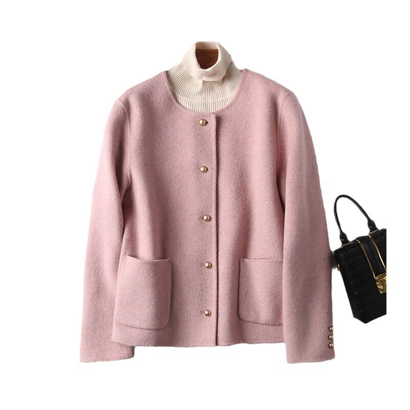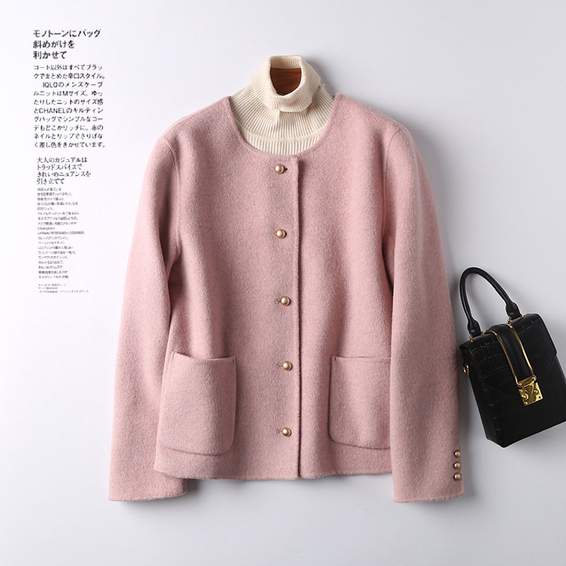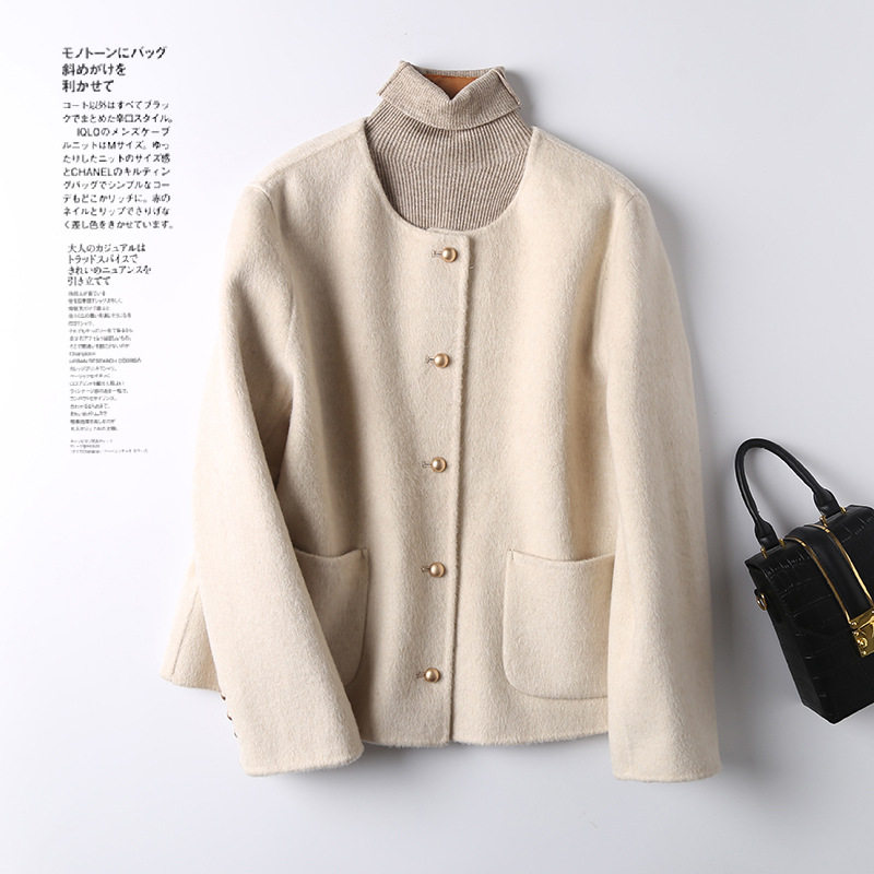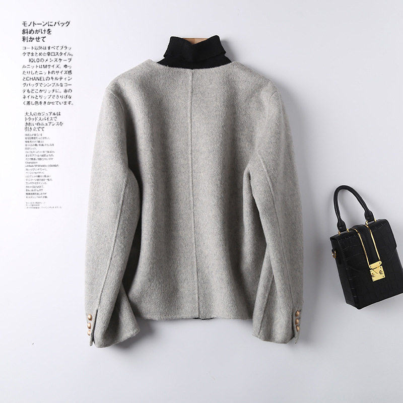 2025春款小个子毛呢外套小香风羊毛双面羊毛大衣天丝桑兔绒短款女
