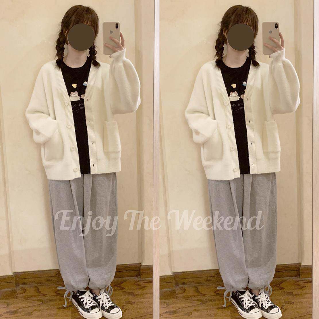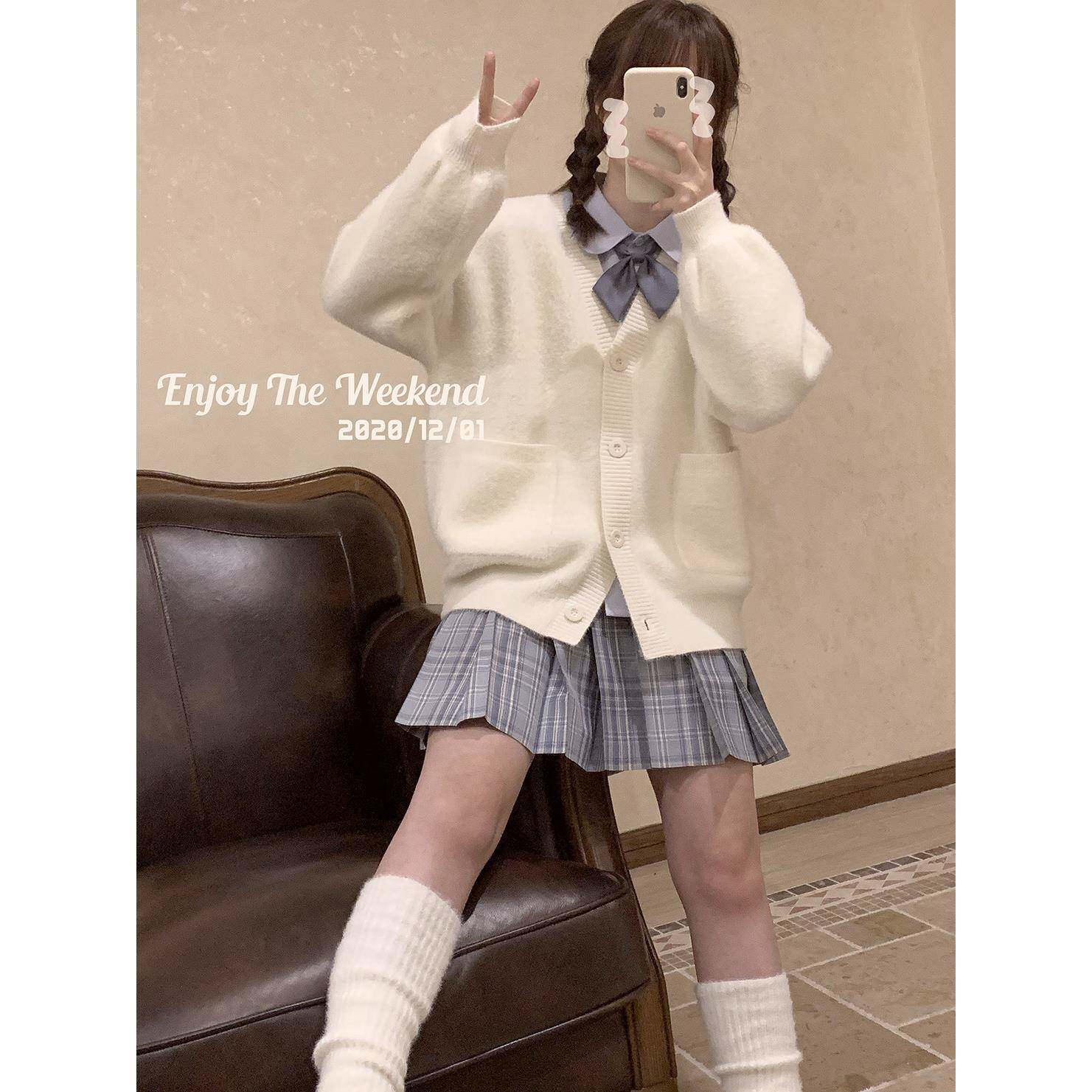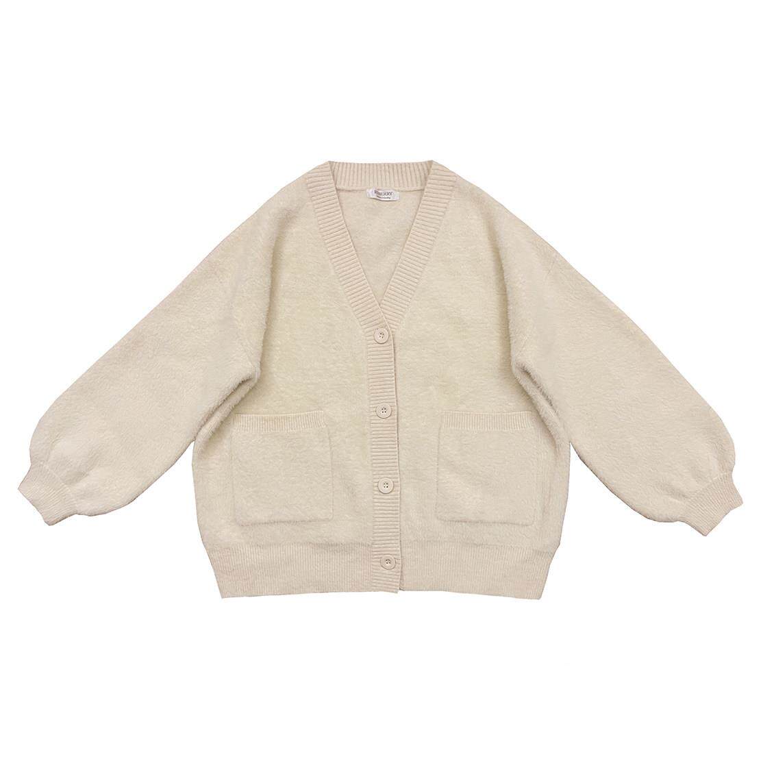 仿貂绒 毛绒甜美松女 白色 基础百搭 宽纯色外 毛衣开衫 少套BJO