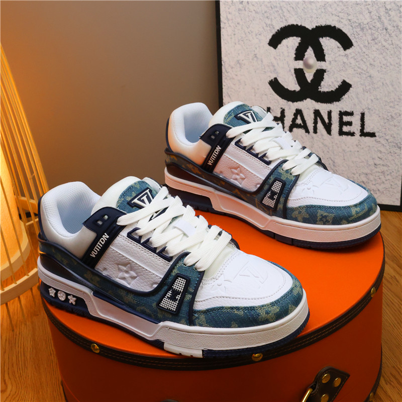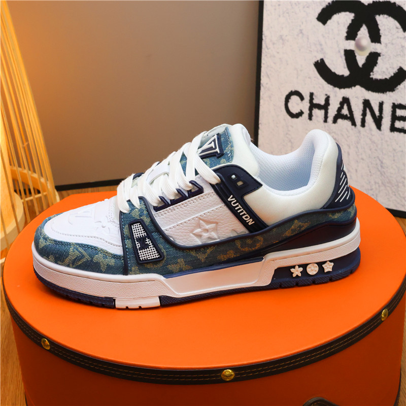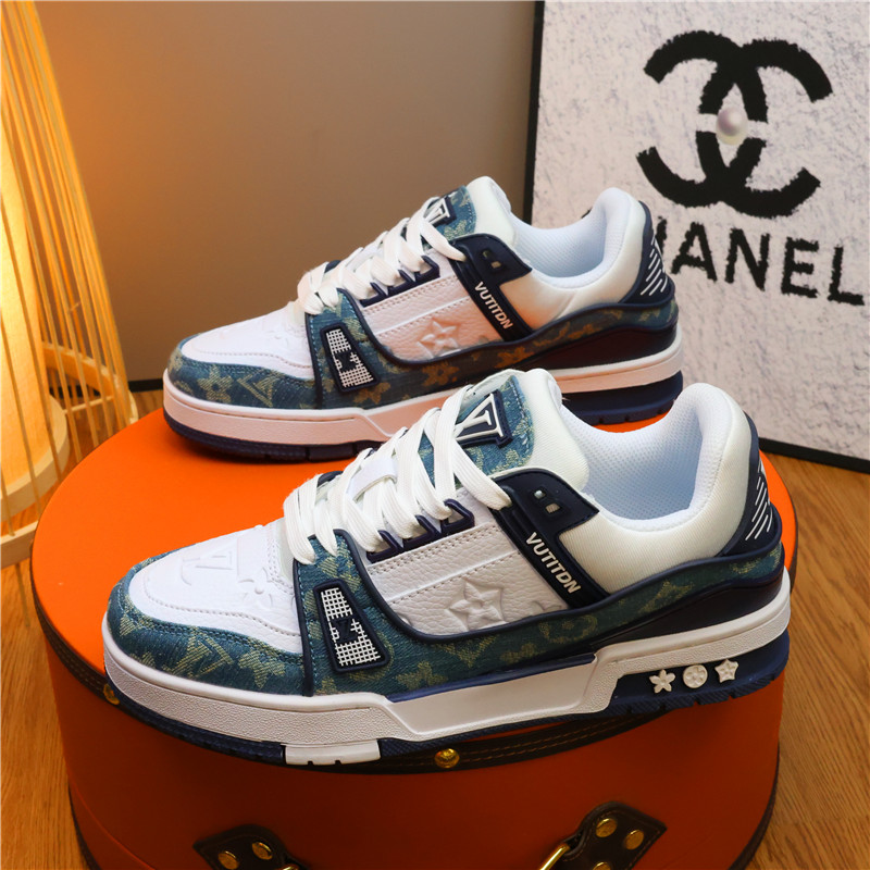 欧美风轻奢46大码潮流蓝白拼色低帮板鞋男百搭厚底增高运动休闲鞋