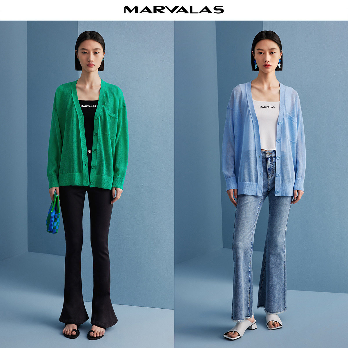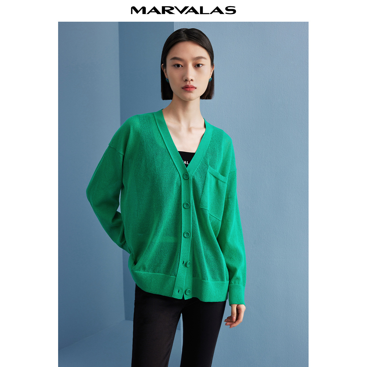 【呼呼严选粉丝专享】曼德诗纯色冰丝亚麻开衫夏季新款v领宽松自